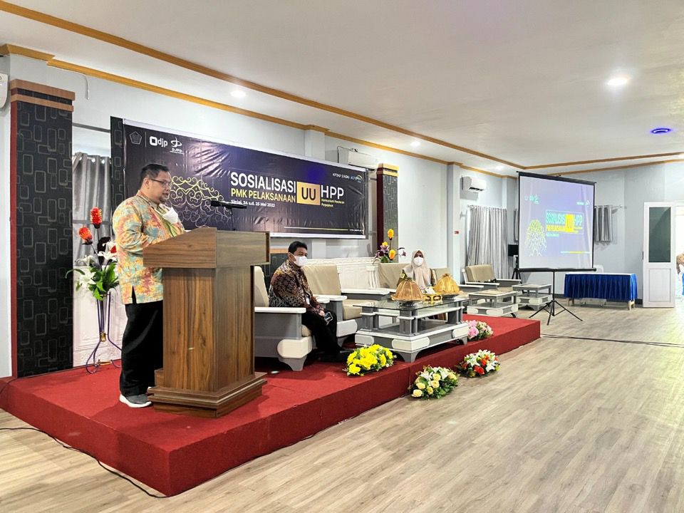 Kantor Pelayanan Pajak (KPP) Pratama Bulukumba menyelenggarakan Sosialisasi Peraturan Menteri Keuangan (PMK) Pelaksanaan Undang-Undang Harmonisasi Peraturan Perpajakan (UU HPP) yang bertempat di ruang pertemuan Wisma Sanjaya (Selasa, 24/05).