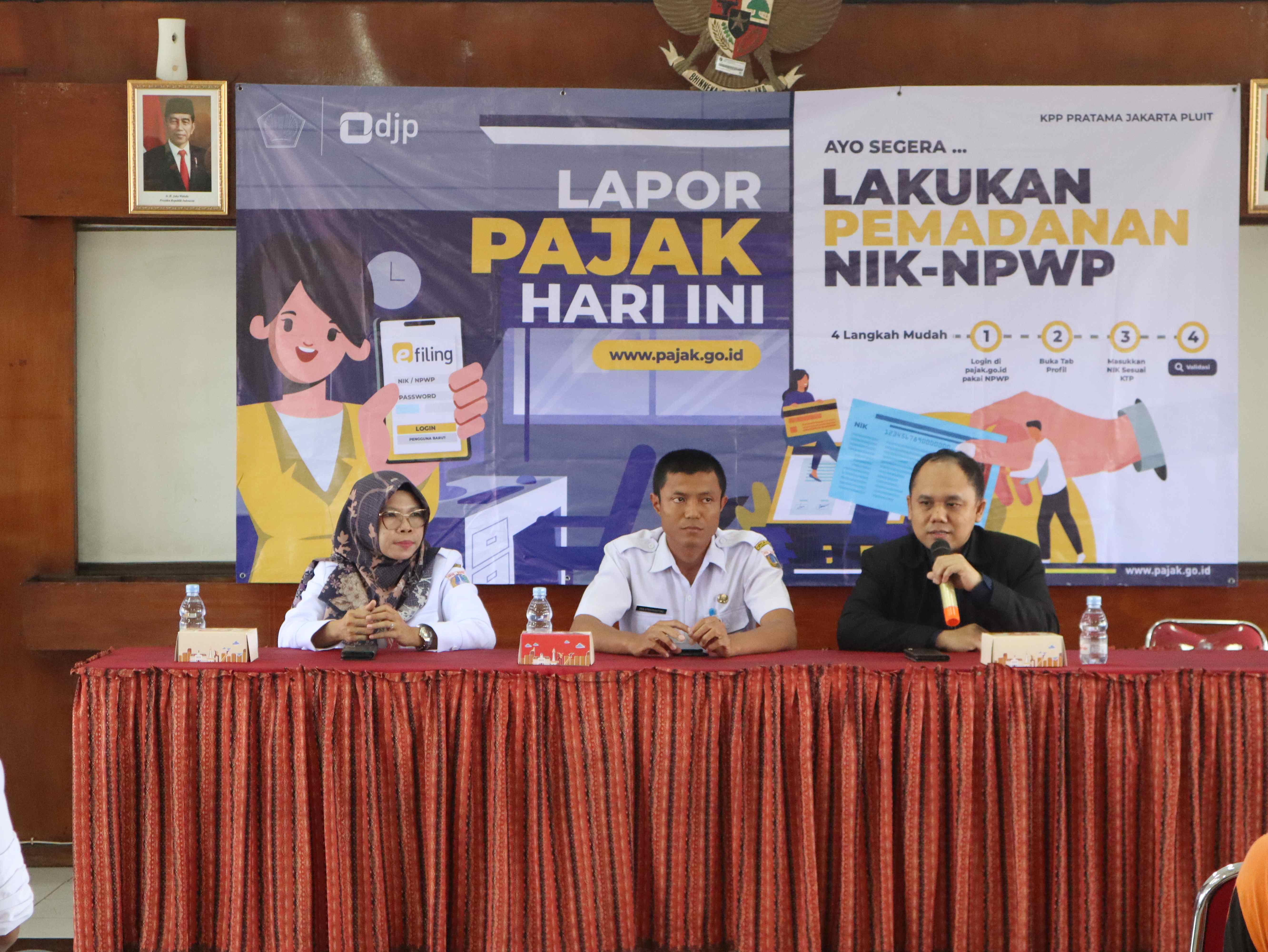 Sebagai upaya untuk meningkatkan kepatuhan wajib pajak, Tim Penyuluh Pajak Kantor Pelayanan Pajak (KPP) Pluit memudahkan pelaporan Surat Pemberitahuan (SPT) wajib pajak khususnya yang terdaftar di KPP Pluit, dengan mengadakan kegiatan sosialisasi sekaligus pojok pajak di Kantor Kelurahan Kamal Muara (Rabu, 6/3). Kegiatan diikuti 75 peserta diadakan selama 2 jam pukul 09.00 sampai 11.00 WIB. Peserta adalah pegawai Penanganan Prasaranan dan Sarana Umum (PPSU) serta staf Kelurahan Kamal Muara.