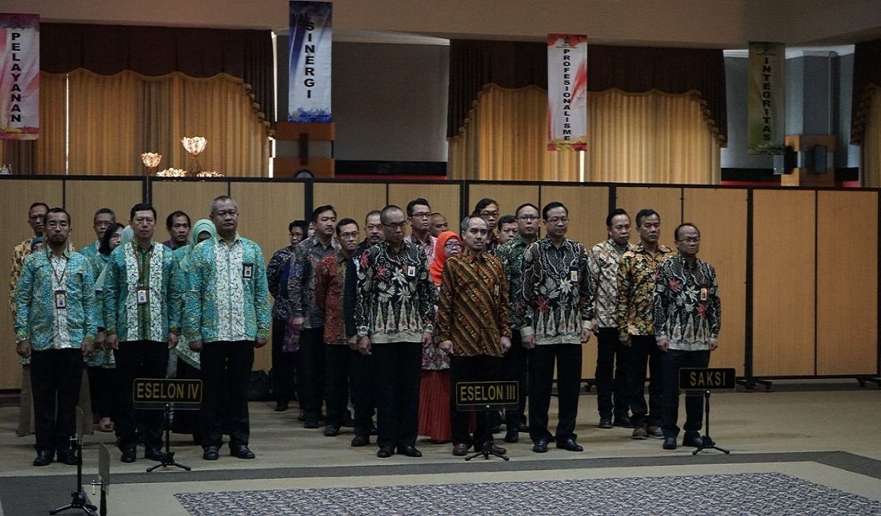Kanwil DJP Jawa Timur II menggelar acara pelantikan dan pengambilan sumpah jabatan 97 Pejabat Fungsional dan Pengawas di Aula Kanwil DJP Jawa Timur II (Jumat, 11/10). Sebanyak 80 Pejabat Fungsional Pemeriksa Pajak dan Fungsional Penilai PBB serta 17 Pejabat Pengawas dilantik oleh Kepala Kanwil DJP Jawa Timur II Lusiani pada acara tersebut. Hadir pula seluruh Pejabat Eselon III dan Pejabat Eselon IV di lingkungan Kanwil DJP Jawa Timur II menyaksikan pelantikan maupun sebagai saksi.