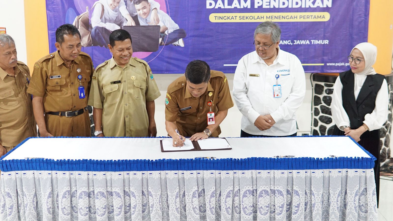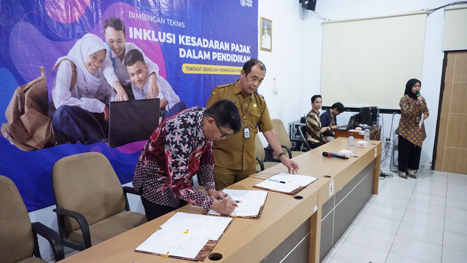 Direktorat Penyuluhan, Pelayanan, dan Hubungan Masyarakat dan Kantor Wilayah DJP Jawa Timur III bekerja sama dengan Dinas Pendidikan dan Kebudayaan Kota Malang mengadakan bimbingan teknis dan penandatanganan perjanjian kerja sama bersama 30 Kepala Sekolah Menengah Pertama (SMP) di Kota Malang, bertempat di Aula SMP Negeri 1 Kota Malang (Senin, 30/10).