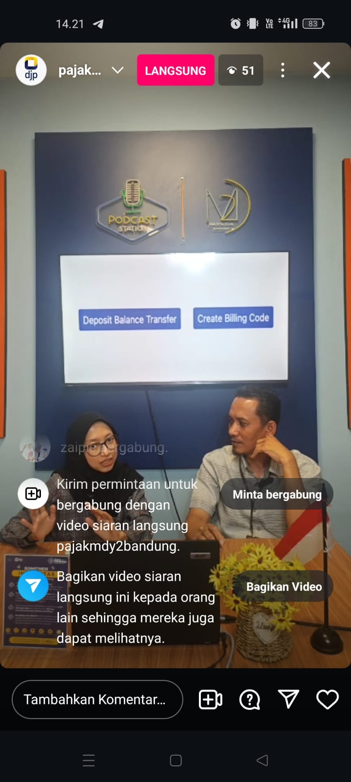 Kemudian, di hadapan lebih dari 50 pengguna Instagram yang bergabung di siaran langsung Instagram KPP Madya Dua Bandung, Suci menambahkan bagaimana proses bisnis pembayaran pajak setelah berlakunya Aplikasi Coretax.