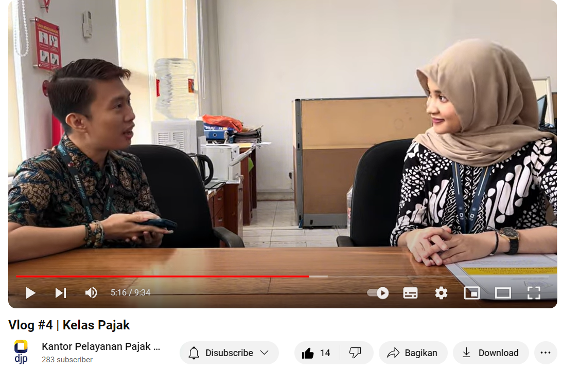 Selanjutnya, vlog ditutup dengan wawancara antara Pelaksana Nabella Putri Lestari dengan Penyuluh Pajak Akhmad Tahmid Amir atau bisa disapa Ata.