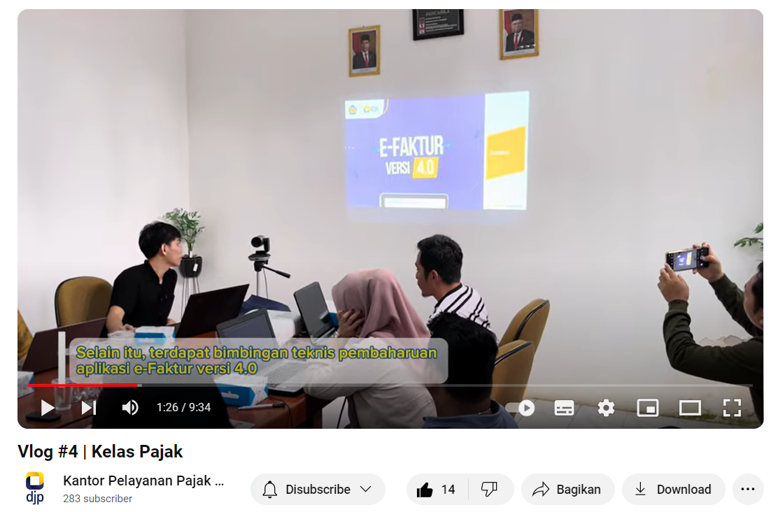 Vlog ini berdurasi selama sembilan menit yang menayangkan cuplikan-cuplikan suasana Kelas Pajak yang telah berlangsung selama tiga hari sejak tanggal 23 s.d. 25 Juli 2024. Selain itu terdapat pula, cuplikan penyampaian kesan-kesan oleh peserta Kelas Pajak. Kelas Pajak ini dihadiri oleh puluhan Wajib Pajak Badan yang terdaftar sebagai Pengusaha Kena Pajak sehingga memiliki kewajiban untuk menerbitkan faktur pajak.
