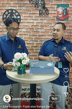 Kantor Pelayanan Pajak (KPP) Madya Jakarta Utara mengadakan live session instagram, menjelaskan pajak atas natura (Rabu, 26/6).Kegiatan berlangsung di ruang kreatif KPP Madya Jakarta Utara, materi disampaikan Fungsional Penyuluh Pajak Yofie Ferdian Mashudha dan Donny Kurniawan. Kedua pemateri memberikan penjelasan terkati pajak atas Natura. Live Instagram yang dilaksankan KPP Madya Jakarta Utara diikuti 40 viewers.