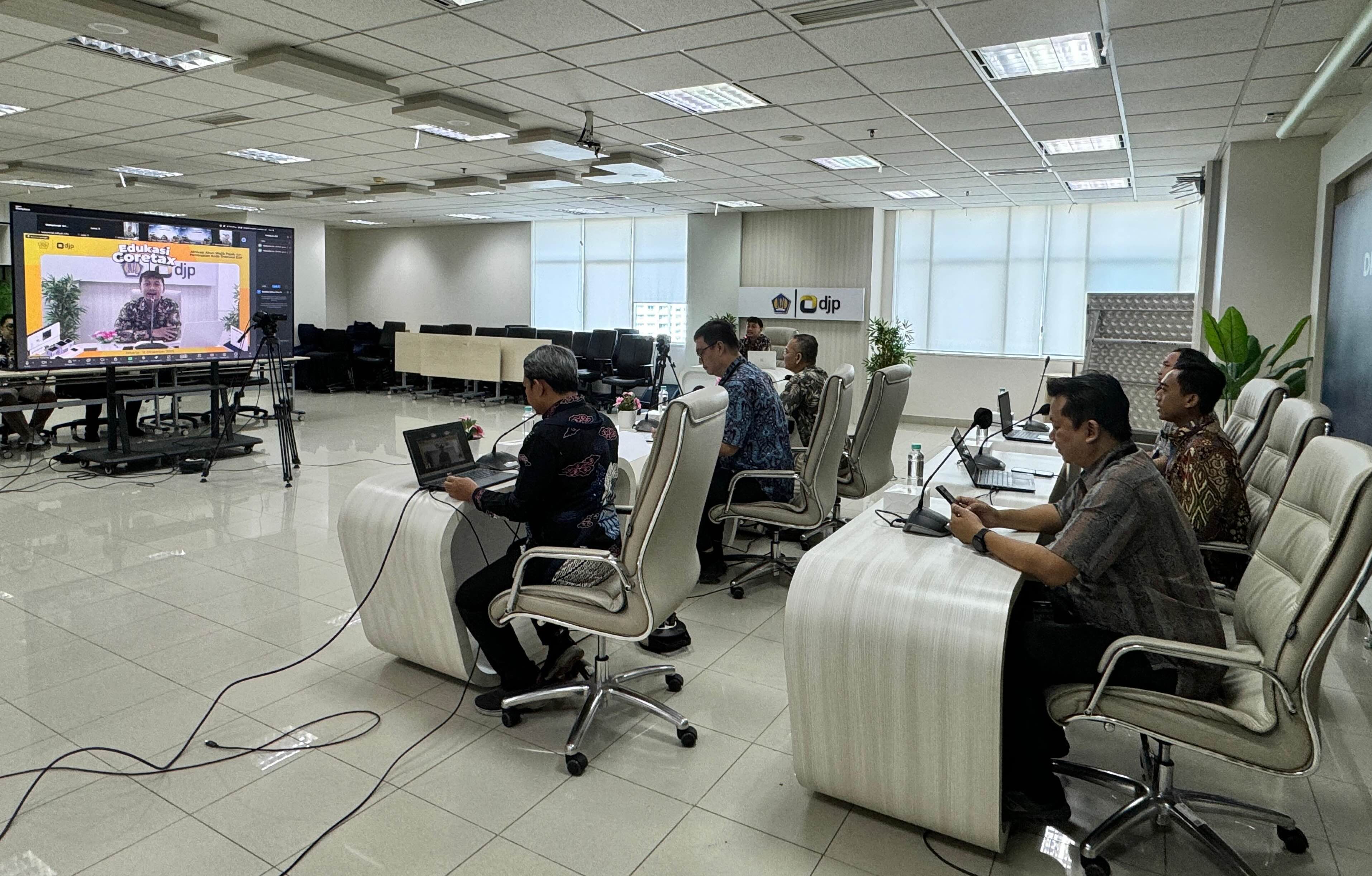 Berlangsung secara daring, DJP mengundang anggota Himpunan Bank Milik Negara (Himbara) dan Bank Syariah Indonesia (BSI) untuk mengikuti Sosialisasi Aktivasi Akun Wajib Pajak dan Pembuatan Kode Otorisasi/Sertifikat Elektronik pada Coretax DJP (Jumat, 12/12). Himbara beranggotakan Bank Mandiri, Bank Rakyat Indonesia (BRI), Bank Nasional Indonesia (BNI), dan Bank Tabungan Negara (BTN).