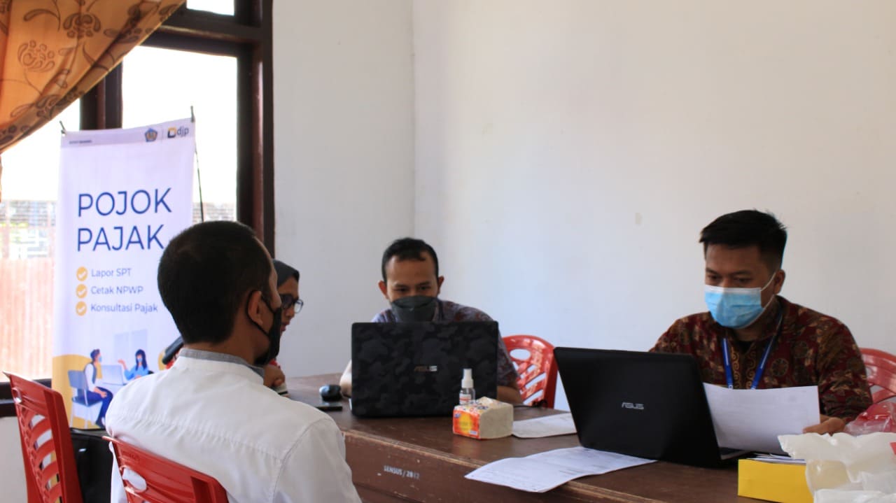 Kantor Pelayanan, Penyuluhan, dan Konsultasi Perpajakan (KP2KP) Banawa mengadakan kegiatan pojok pajak di Kantor Kecamatan Banawa Tengah, Kabupaten Donggala (Sabtu, 19/3). Kegiatan yang berlangsung selama dua hari hingga tanggal 20 Maret 2022 ini bertujuan untuk memberikan pelayanan kepada wajib pajak yang mempunyai keterbatasan waktu dan jarak dalam mendapatkan pelayanan pengisian Surat Pemberitahuan (SPT) Tahunan Orang Pribadi.