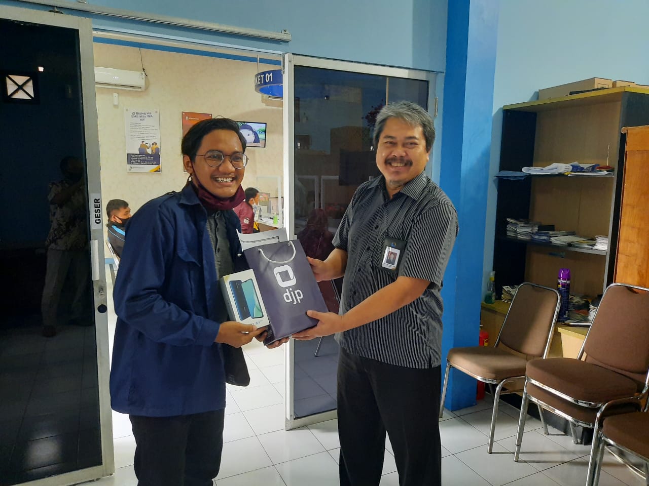 Kepala Kantor Pelayanan, Penyuluhan, dan Konsultasi Perpajakan (KP2KP) Bumiayu mewakili Kantor Wilayah Direktorat Jenderal Pajak Jawa Tengah I (Kanwil DJP Jateng I) menyerahkan hadiah serta piala dan piagam bagi peraih juara 1 dan juara 3 yang berdomili di Brebes, Jawa Tengah (Selasa, 4/8). Penyerahan hadiah ini dilakukan di KP2KP Bumiayu.