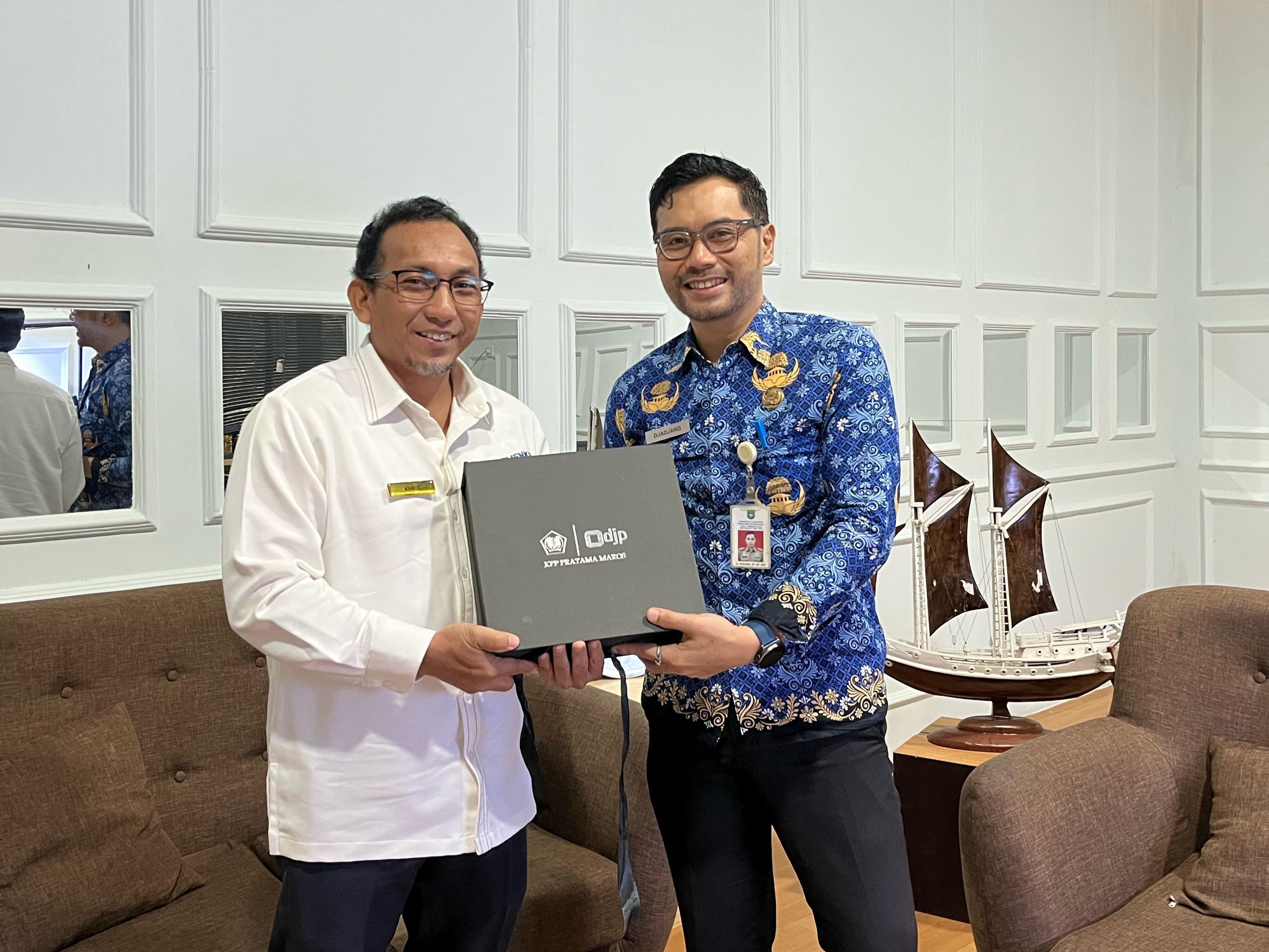 Kepala Kantor Pelayanan Pajak (KPP) Pratama Maros, Khris Rolanto, melakukan kunjungan kerja ke Dinas Pemberdayaan Masyarakat Desa (DPMD) Kabupaten Pangkajene dan Kepulauan, Kabupaten Pangkajene (Senin, 17/3). Dalam kunjungan ini, beliau didampingi oleh Kepala Seksi Pengawasan V dan bertemu dengan Kepala Dinas Pemberdayaan Masyarakat Desa (DPMD) Kabupaten Pangkep, Ir. Djajang ST., M.T., IPU.