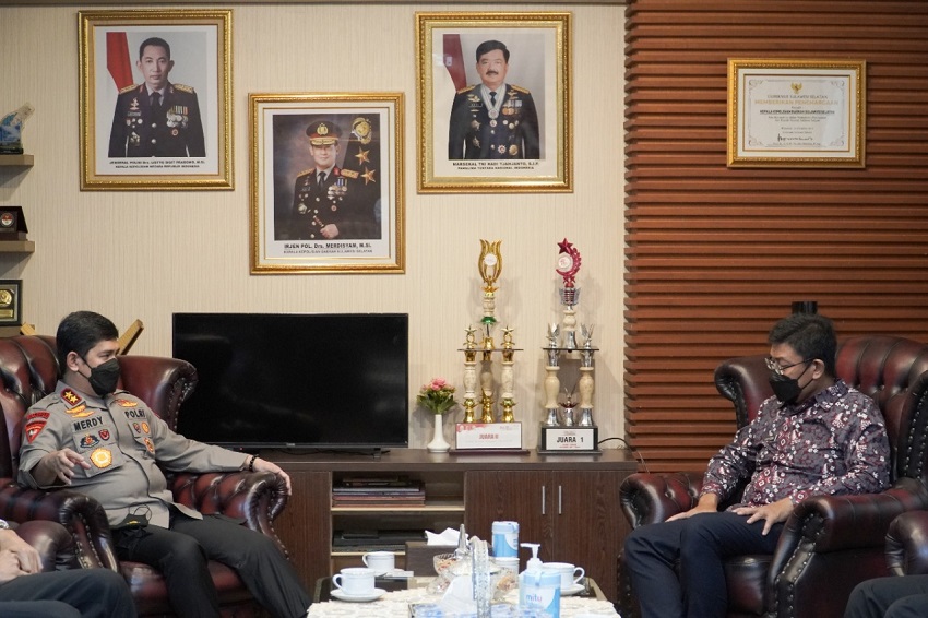 Hari ini Kepala Kanwil DJP Sulselbartra Hantriono Joko Susilo bersama jajarannya melakukan kunjungan kerja ke Kantor Kepolisian Daerah Sulawesi Selatan di Kota Makassar (Rabu, 3/3). Dalam kesempatan ini, rombongan Kepala Kanwil DJP Sulselbartra diterima langsung oleh Kapolda Sulsel Irjen Pol Merdisyam di ruang tamu pimpinan Kantor Polda Sulsel.
