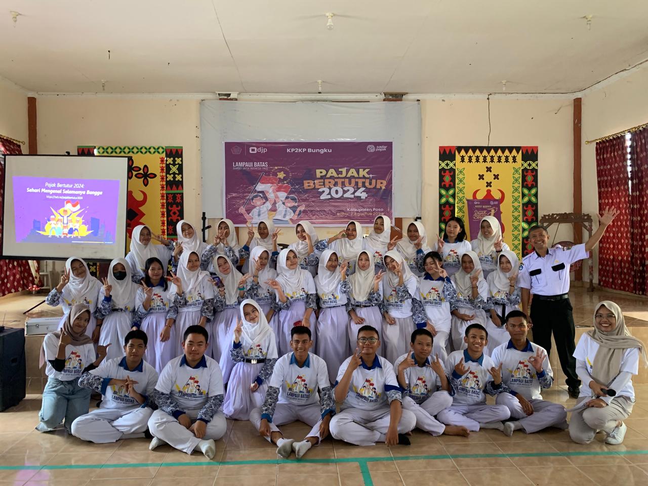 Kantor Pelayanan, Penyuluhan, dan Konsultasi Perpajakan (KP2KP) Bungku yang wilayah kerjanya meliputi Kabupaten Poso dan Kabupaten Tojo Una-Una turut menyelenggarakan kegiatan Pajak Bertutur 2024. Kegiatan ini dilaksanakan di SMA Negeri III Poso dengan melibatkan 31 peserta didik dari kelas X hingga kelas XII.