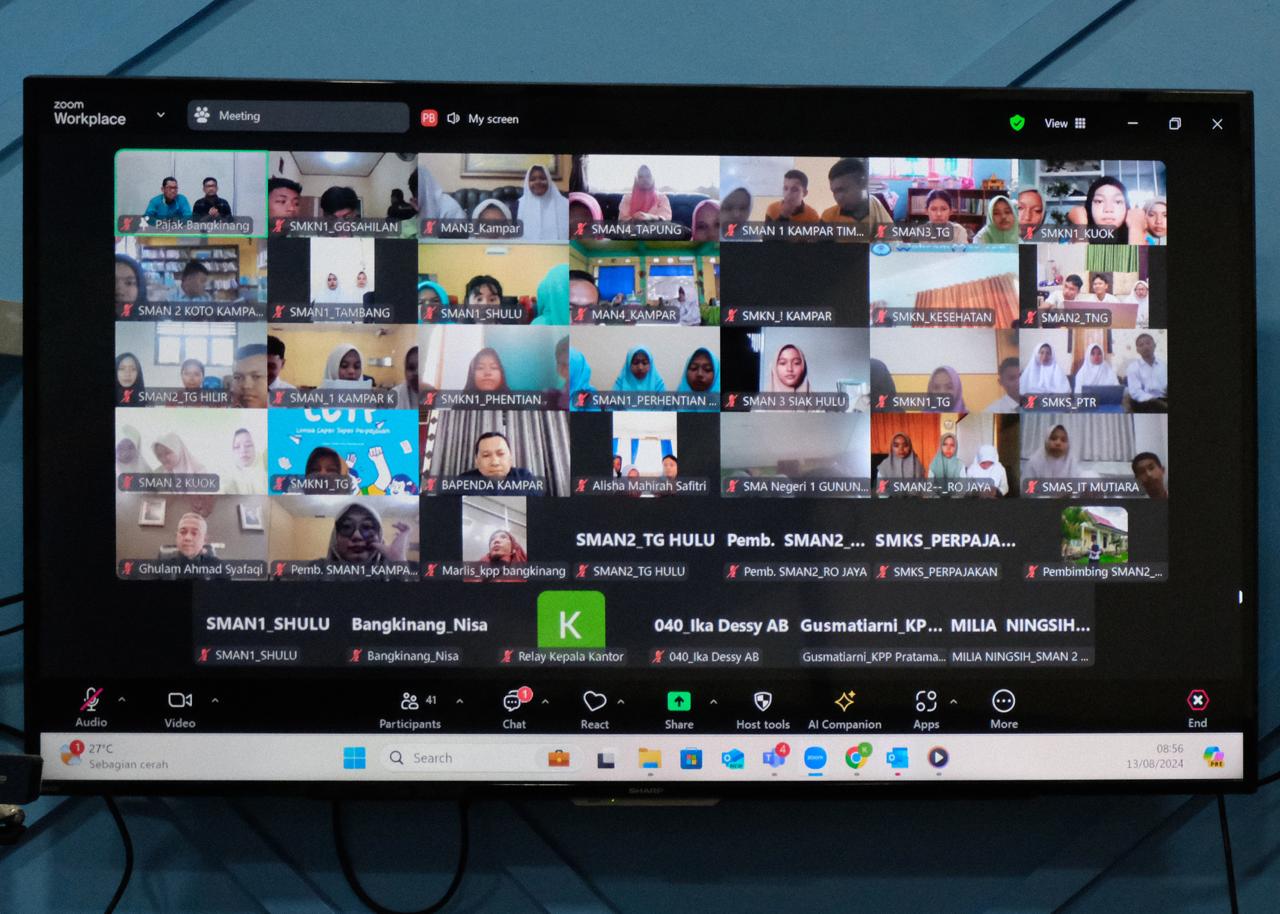 Kantor Pajak Bangkinang menggelar Lomba Cepat Tepat Perpajakan yang diikuti oleh siswa SMA/SMK/sederajat di wilayah Kabupaten Kampar dan Kabupaten Rokan Hulu secara daring dengan memanfaatkan platform Zoom Meeting dan Kahoot (Kamis, 15/8). Kegiatan ini merupakan bagian dari upaya inklusi kesadaran pajak yang gencar dilakukan oleh Direktorat Jenderal Pajak (DJP) sebagai salah satu pilar penting dalam membangun kepatuhan pajak di masa depan.