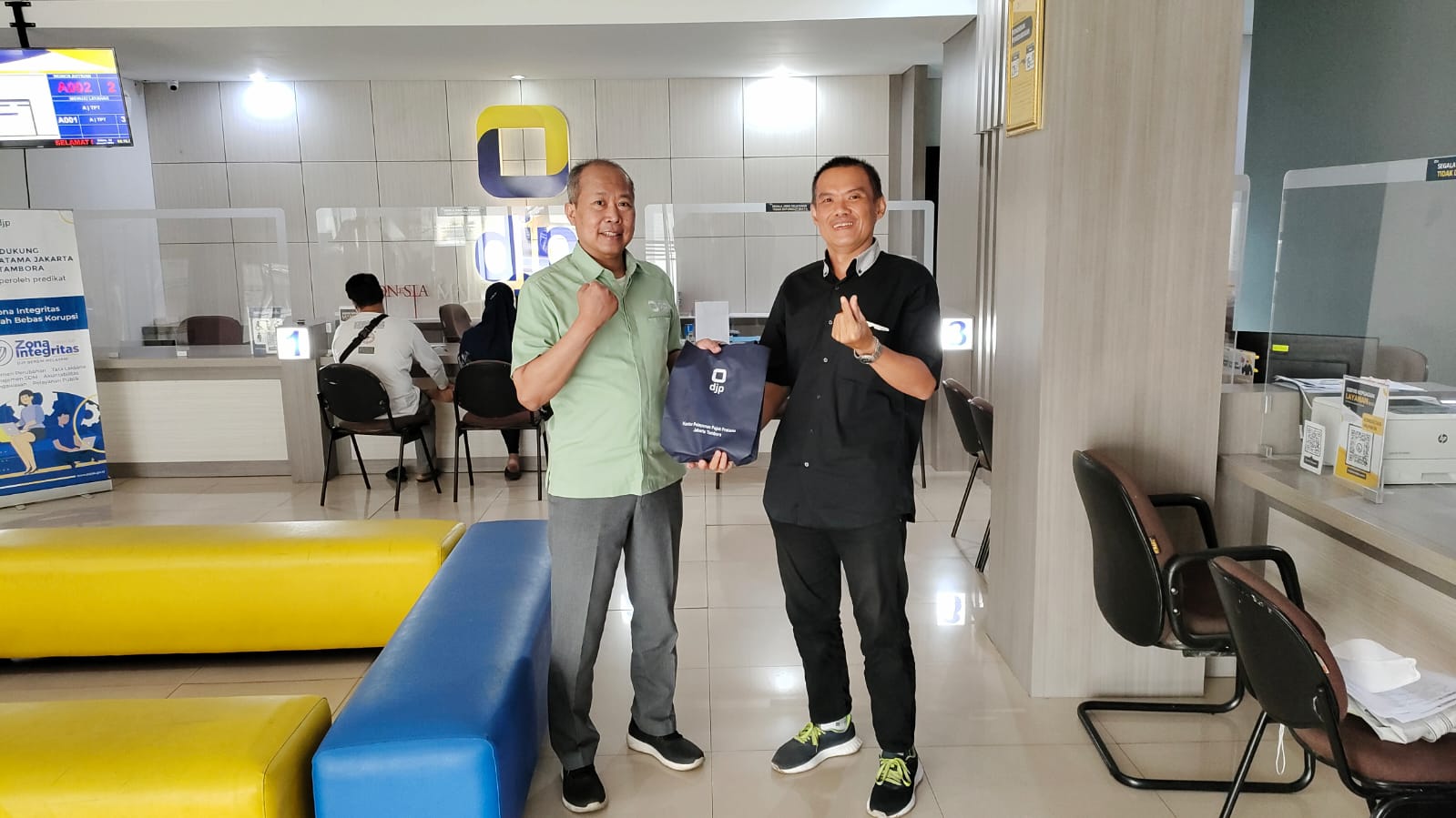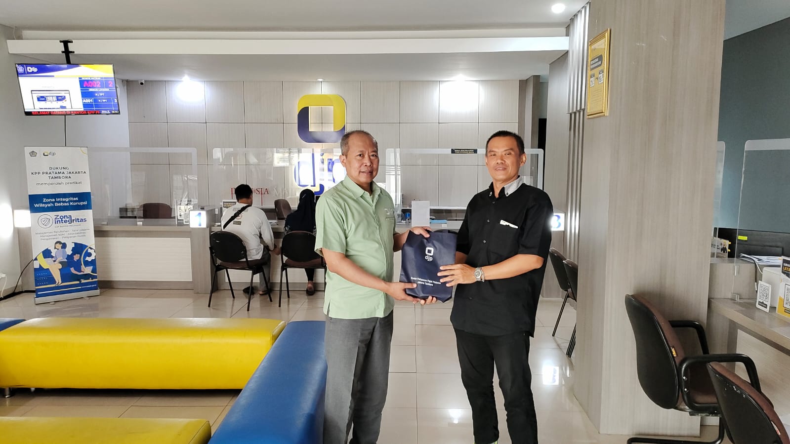 Kantor Pelayanan Pajak (KPP) Pratama Jakarta Tambora memberikan apresiasi kepada Alex sebagai wajib pajak pertama tahun 2024 yang melakukan konsultasi pelaporan SPT Tahunan secara langsung di Loket Helpdesk KPP Pratama Jakarta Tambora (Selasa, 2/1).