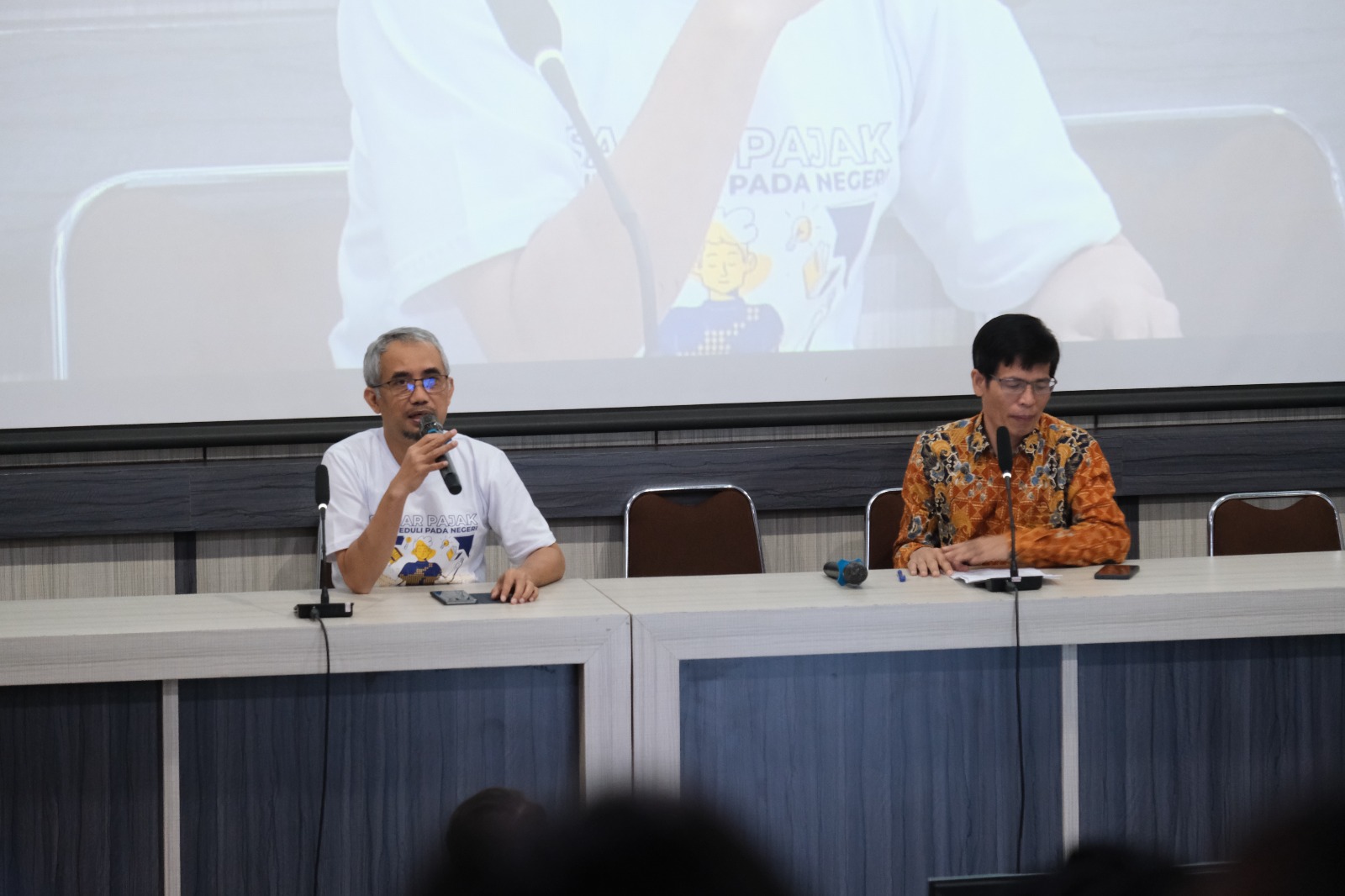 Kantor Wilayah Direktorat Jenderal Pajak Daerah Istimewa Yogyakarta (Kanwil DJP DIY) menyelenggarakan kegiatan Pajak Bertutur 2023 di Ruang Seminar Didaktos Universitas Kristen Duta Wacana (UKDW), Jalan Dr. Wahidin Sudirohusodo Kotabaru, Kecamatan Gondokusuman, Kota Yogyakarta, Provinsi Daerah Istimewa Yogyakarta (Kamis, 27/7).
