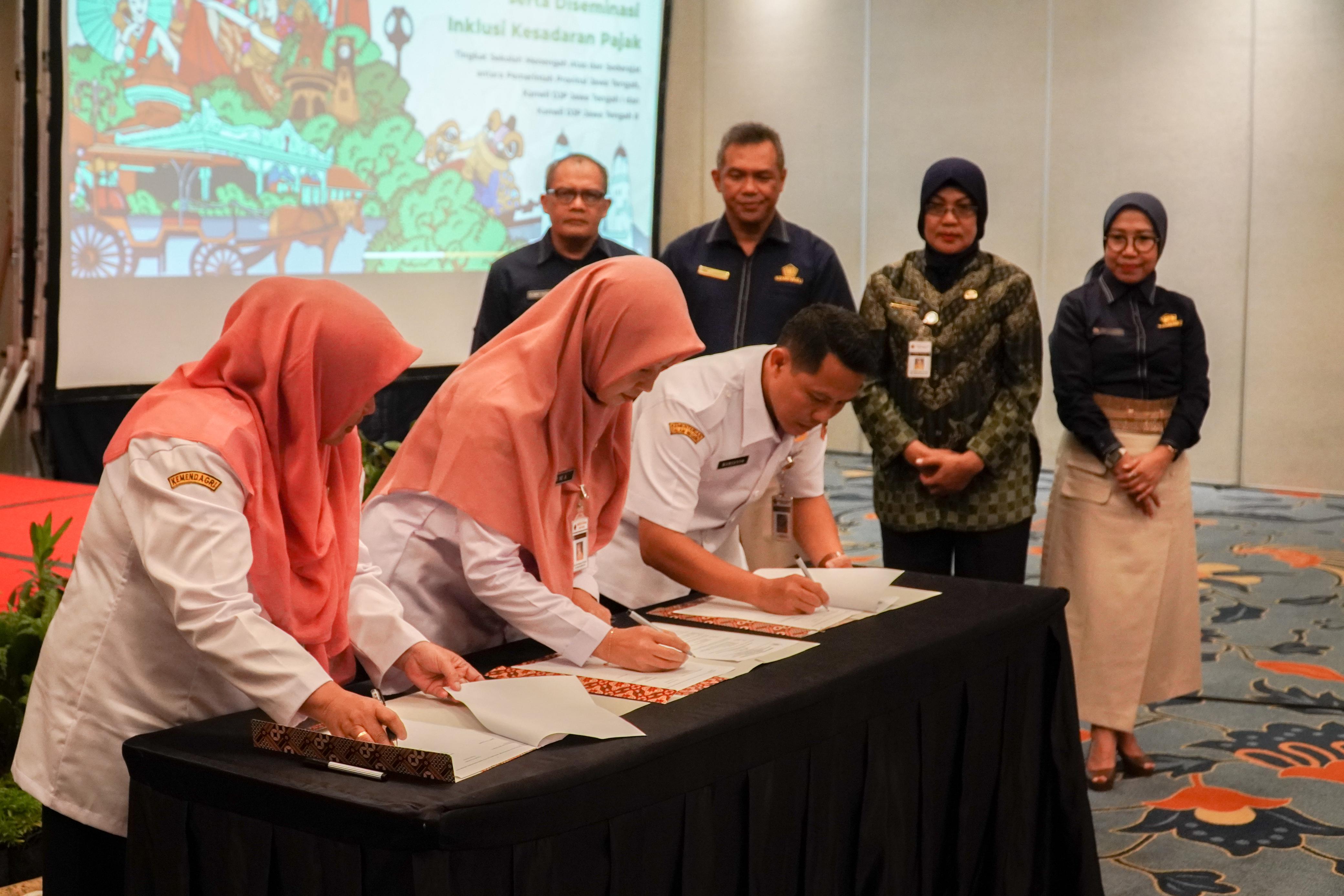 Kantor Wilayah (Kanwil) DJP Jawa Tengah I dan Kanwil DJP Jawa Tengah II meresmikan program Inklusi Kesadaran Pajak tingkat Sekolah Menengah Atas (SMA) dan sederajat di Provinsi Jawa Tengah (Rabu, 24/7). Peresmian ini ditandai dengan ditandatanganinya Nota Kesepakatan Sinergi tentang Pelaksanaan Inklusi Kesadaran Pajak Tingkat Sekolah Menengah Atas dan Sederajat di Provinsi Jawa Tengah oleh Kepala Kanwil DJP Jawa Tengah I, Kepala Kanwil DJP Jawa Tengah II dan Pj. Gubernur Jawa Tengah yang diwakili dengan paraf oleh perwakilan dari Biro Pemerintahan, Otonomi Daerah dan Kerja Sama Setda Provinsi Jawa Tengah di Ballroom Swiss Belinn Saripetojo, Surakarta.