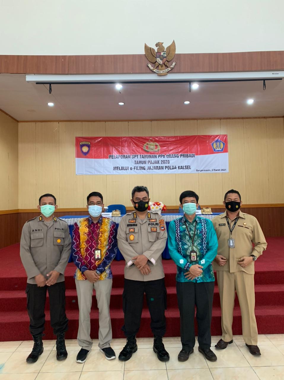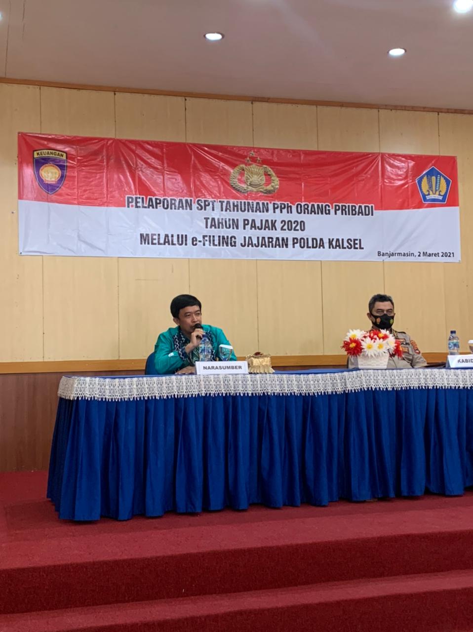 Kepolisian Republik Indonesia (Polda) Provinsi Kalimantan Selatan mengundang Kanwil DJP Kalimantan Selatan dan Tengah (Kalselteng) berserta KPP Pratama Banjarmasin Selatan dalam rangka penyampaian materi perpajakan dan pendampingan pelaporan SPT Tahunan melalui e-Filing di Aula Kanwil Ditjen Perbendaharaan Kalsel, Banjarmasin (Selasa, 2/2).