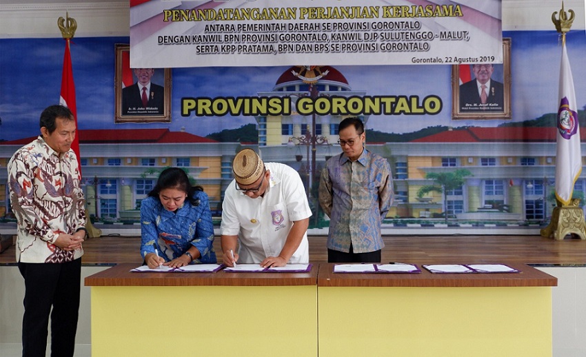 Dalam rangka optimalisasi pemungutan pajak pusat dan pajak daerah, dilaksanakan penandatanganan Perjanjian Kerja Sama antara Kanwil DJP Suluttenggomalut dengan Pemerintah Provinsi/Kabupaten/Kota di wilayah Provinsi Gorontalo (Kamis, 22/8).