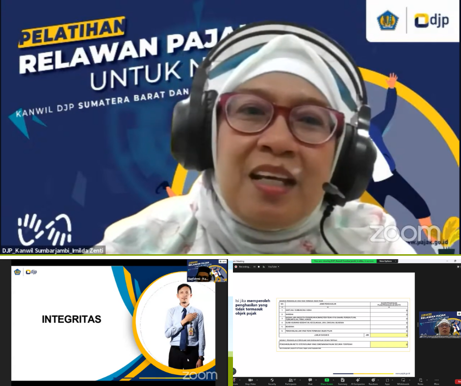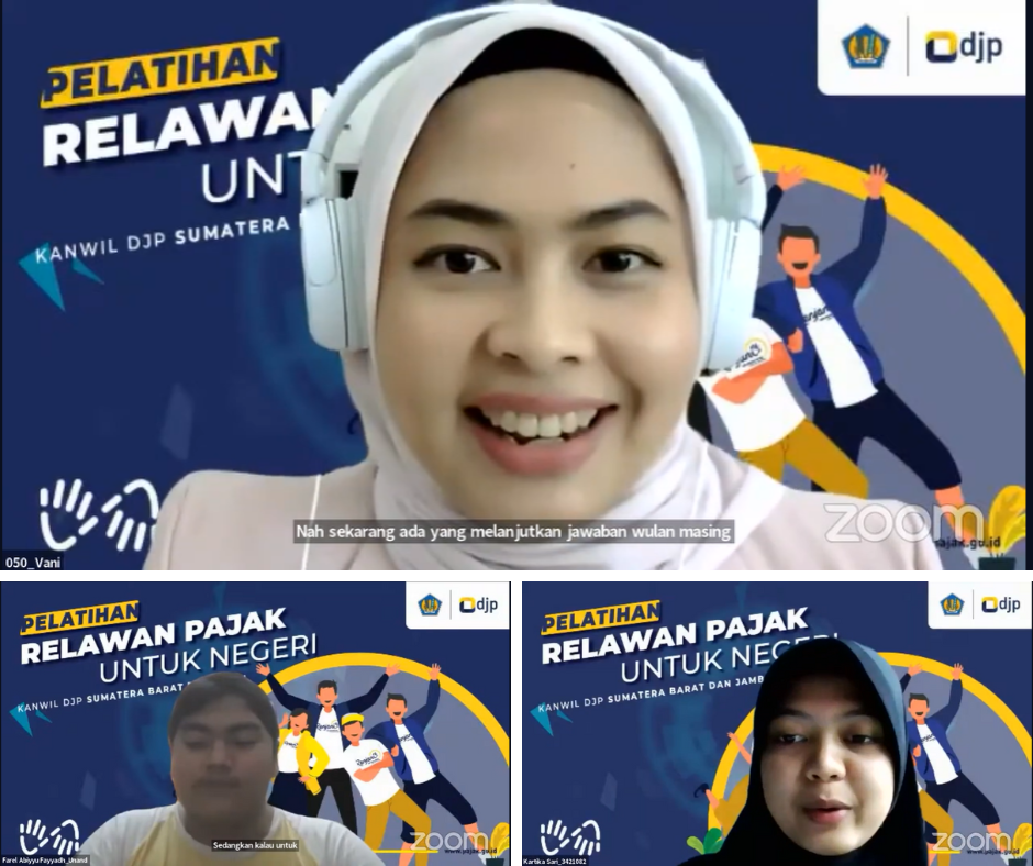 Kantor Wilayah DJP Sumatera Barat dan Jambi (Kanwil DJP Sumbarja) mengadakan pelatihan relawan pajak tanggal 29 dan 30 Januari 2024 dengan melibatkan 174 mahasiswa secara daring melalui aplikasi Zoom Meeting dan Kanal Youtube Kanwil DJP Sumbarja (Senin, 5/2).