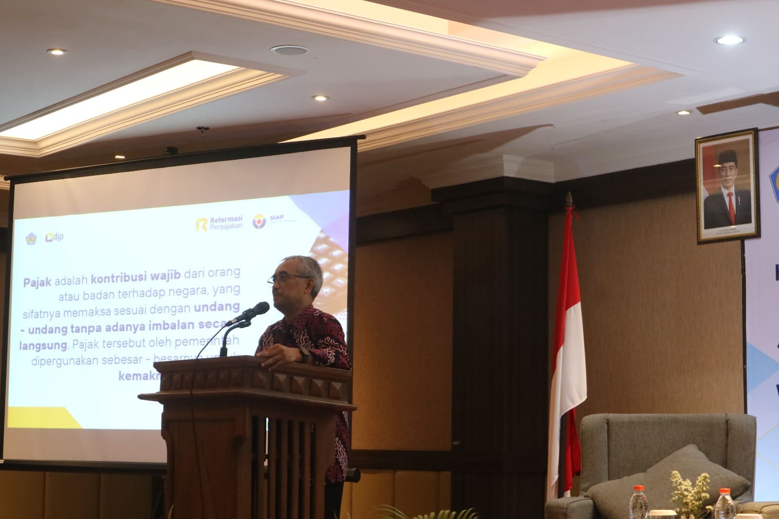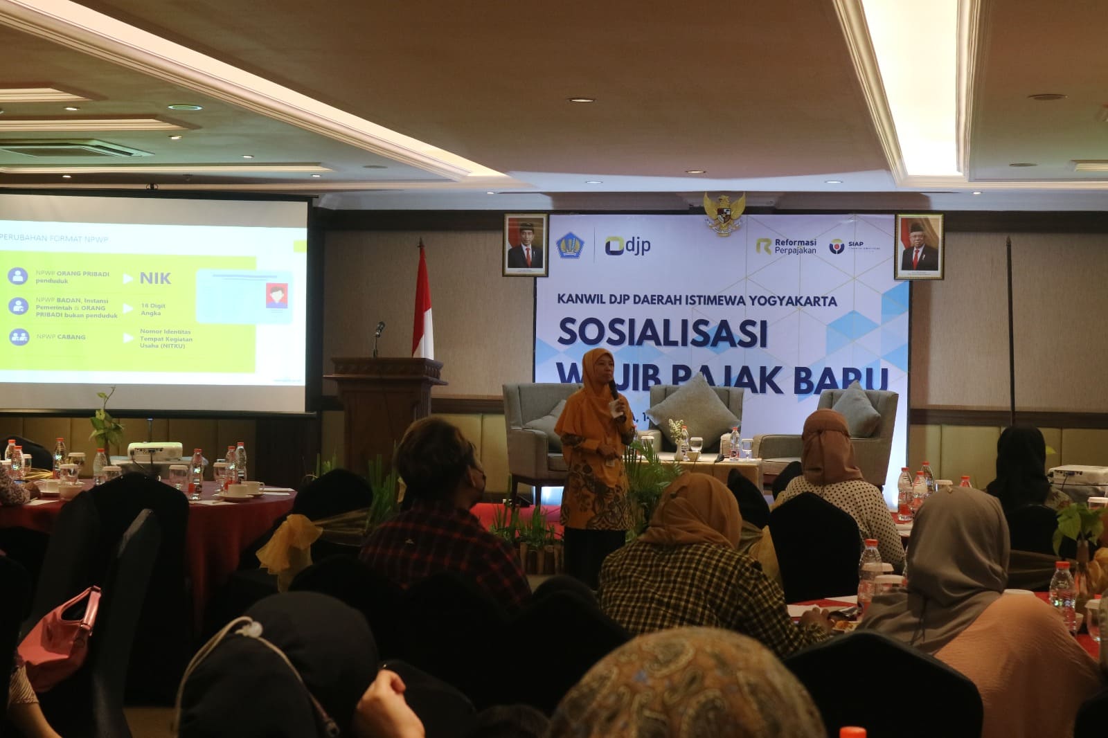Kantor Wilayah Direktorat Jenderal Pajak Daerah Istimewa Yogyakarta (Kanwil DJP DIY) melaksanakan sosialisasi wajib pajak baru di Hotel Grand Rouhan Jogja, Jalan Janti Banguntapan Bantul (Selasa,14/3). Kepala Bidang P2Humas Agung Subchan Kurnianto membuka kegiatan dengan menjelaskan peran pajak dan pentingnya membayar pajak.