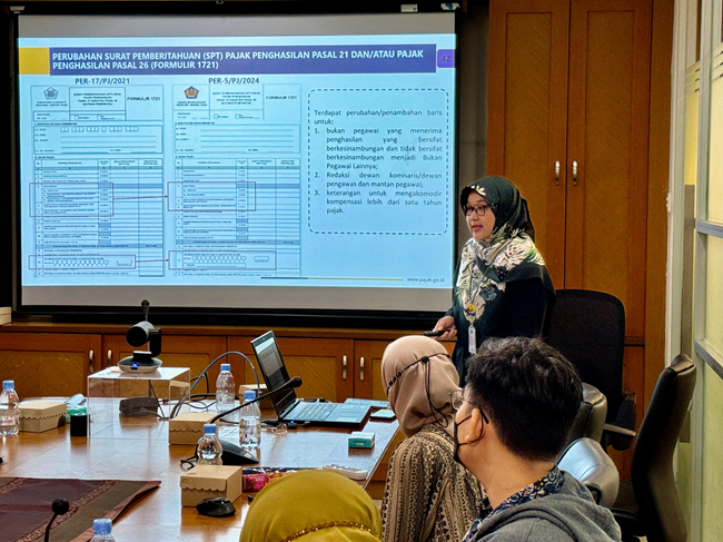Kantor Wilayah Direktorat Jenderal Pajak (DJP) Jakarta Pusat menyelenggarakan kegiatan edukasi perpajakan kepada Badan Kebijakan Perdagangan, Kementerian Perdagangan Republik Indonesia (10/9). Edukasi ini mengenai Peraturan Menteri Keuangan (PMK) Nomor 168 Tahun 2023 tentang Petunjuk Pelaksanaan Pemotongan Pajak atas Penghasilan sehubungan dengan Pekerjaan, Jasa, atau Kegiatan Orang Pribadi.