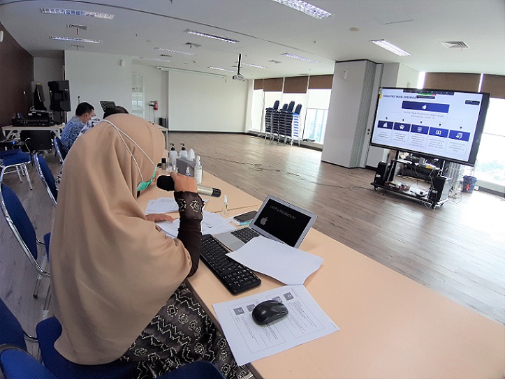 Fanny Elviana selaku pelaksana di Seksi Bimbingan Pelayanan dan Konsultasi memaparkan materi terkait PERPPU Nomor 1 Tahun 2020 tentang Kebijakan Keuangan Negara & Stabilitas Sistem Keuangan untuk Penanganan Pandemi Covid-19 dan/atau dalam rangka Menghadapi Ancaman yang Membahayakan Perekonomian Nasional dan/atau Stabilitas Sistem Keuangan.