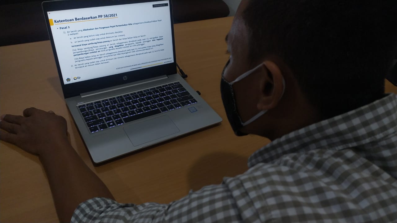 Kantor Wilayah Direktorat Jenderal Pajak (Kanwil DJP) Kalimantan Barat menyelenggarakan Edukasi Perpajakan terkait Peraturan Pemerintah RI Nomor 58 Tahun 2021 tentang Penyerahan Air Bersih yang Dibebaskan dari Pengenaan Pajak Pertambahan Nilai (PPN) secara daring melalui Zoom Meetings di Pontianak (Kamis, 17/6).