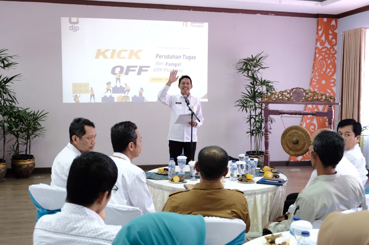 Kantor Wilayah (Kanwil) Direktorat Jenderal Pajak (DJP) Kalimantan Timur dan Utara (Kaltimtara) menggelar acara Kick Off Perubahan Tugas dan Fungsi (Tusi) KPP Pratama di Aula Kantor Pelayanan Pajak (KPP) Pratama Penajam (Senin, 2/3).
