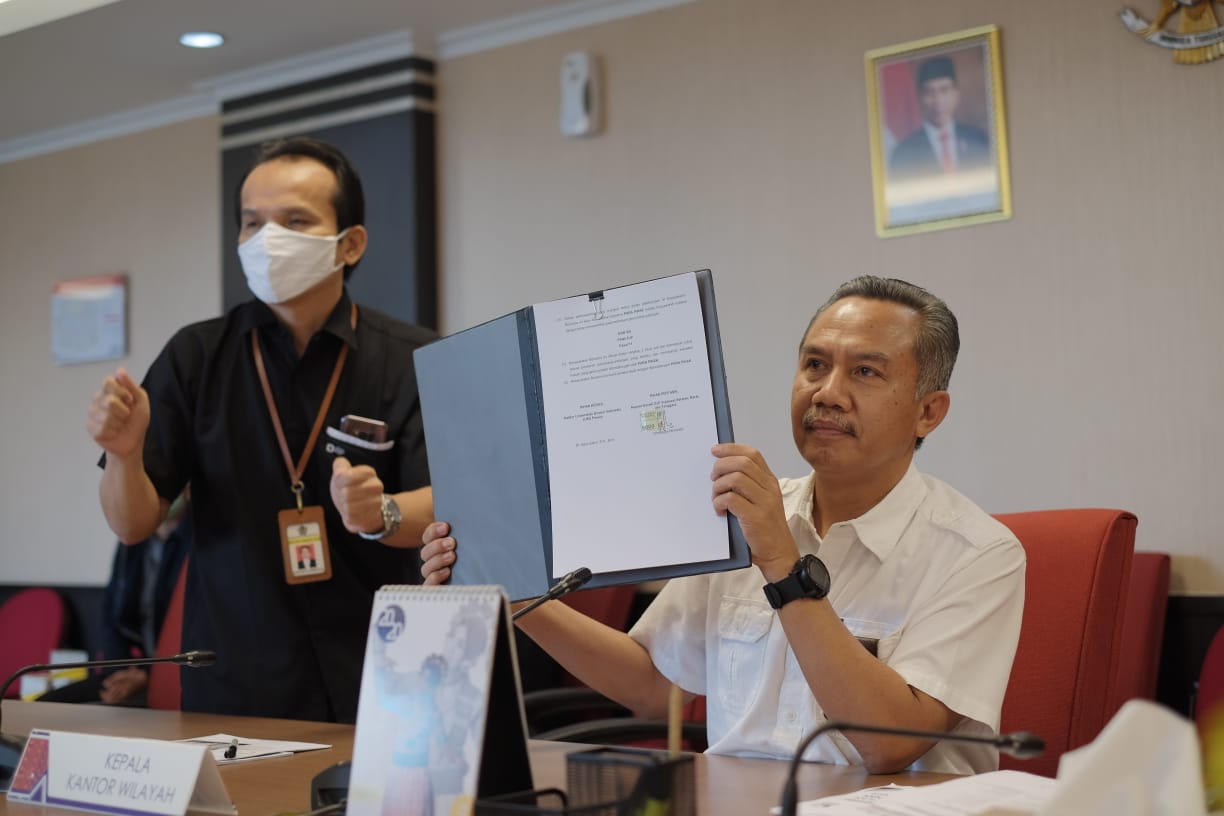 Kepala Kanwil DJP Sulawesi Selatan, Barat, dan Tenggara (Sulselbartra) Wansepta Nirwanda melakukan penandatanganan MoU pembentukan Tax Center bersama perwakilan Universitas Kristen Indonesia (UKI) Paulus Makassar secara webinar dengan memanfaatkan aplikasi zoom meeting di Kota Makassar (Kamis, 9/7) .