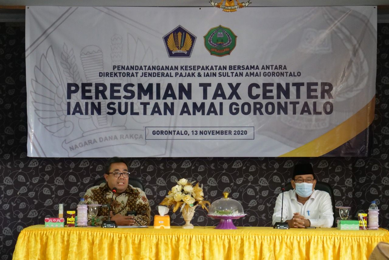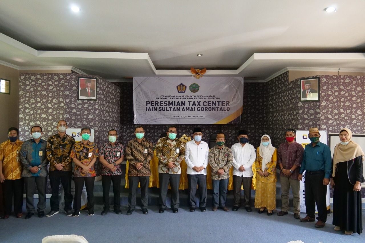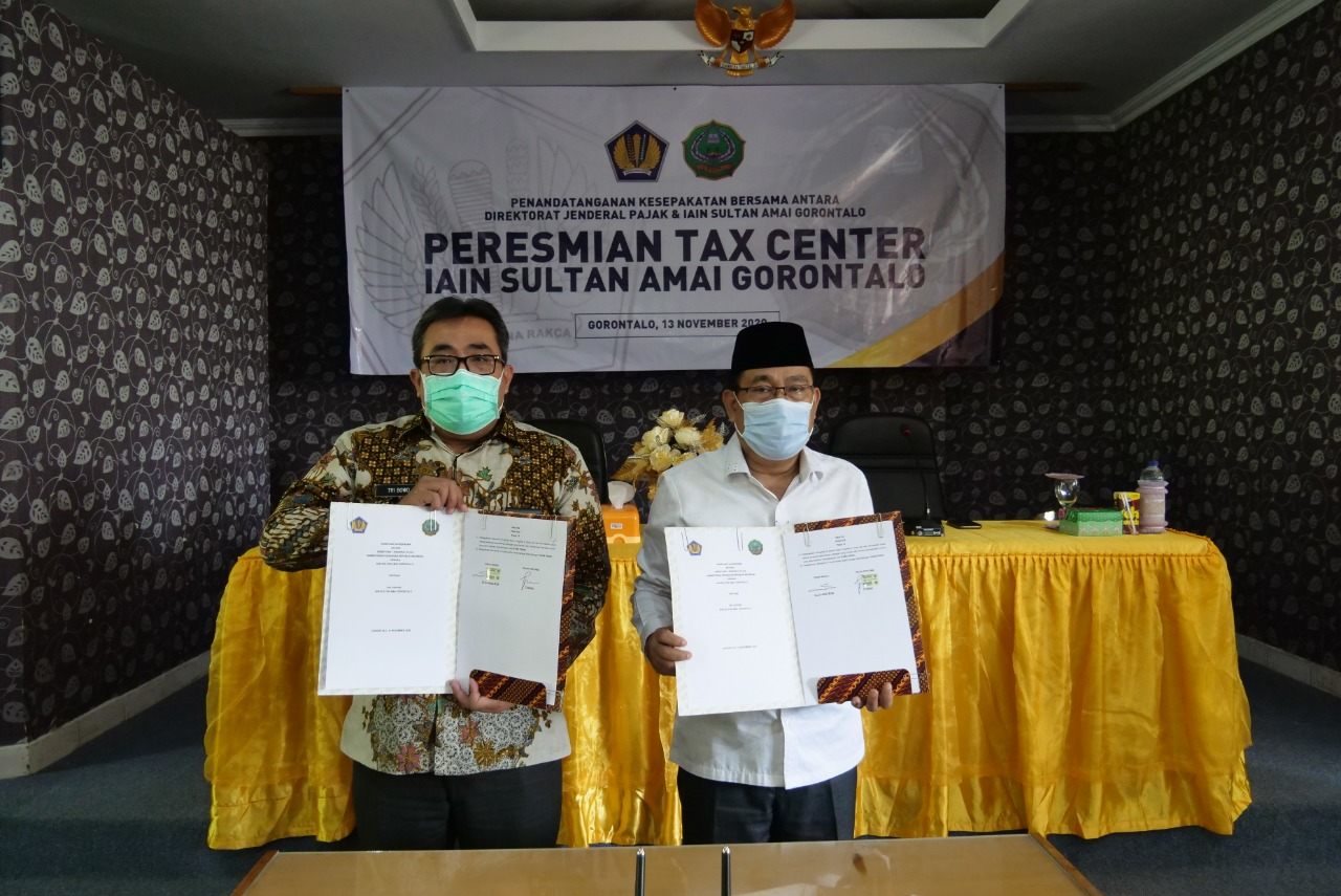 Kantor Wilayah Direktorat Jenderal Pajak Sulawesi Utara, Tengah, Gorontalo dan Maluku Utara (Kanwil DJP Suluttenggomalut) bersama dengan Institut Agama Islam Negeri (IAIN) Sultan Amai Gorontalo melaksanakan penandatanganan Kesepakatan Bersama Pembentukan Tax Center sekaligus Peresmian Tax Center IAIN Sultan Amai Gorontalo di Gedung Rektorat IAIN Sultan Amai Gorontalo (Jumat, 13/11).