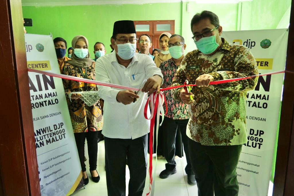 Setelah dilaksanakan penandatanganan Kesepakatan Bersama, kegiatan dilanjutkan dengan peresmian ruang Tax Center IAIN Sultan Amai Gorontalo yang ditandai dengan pemotongan pita oleh Kepala Kantor Wilayah DJP Suluttenggomalut bersama Rektor IAIN Sultan Amai Gorontalo Dr. Lahaji, M.Ag. didampingi pejabat eselon III Kanwil DJP Suluttenggomalut dan Civitas Akademika IAIN Sultan Amai Gorontalo.