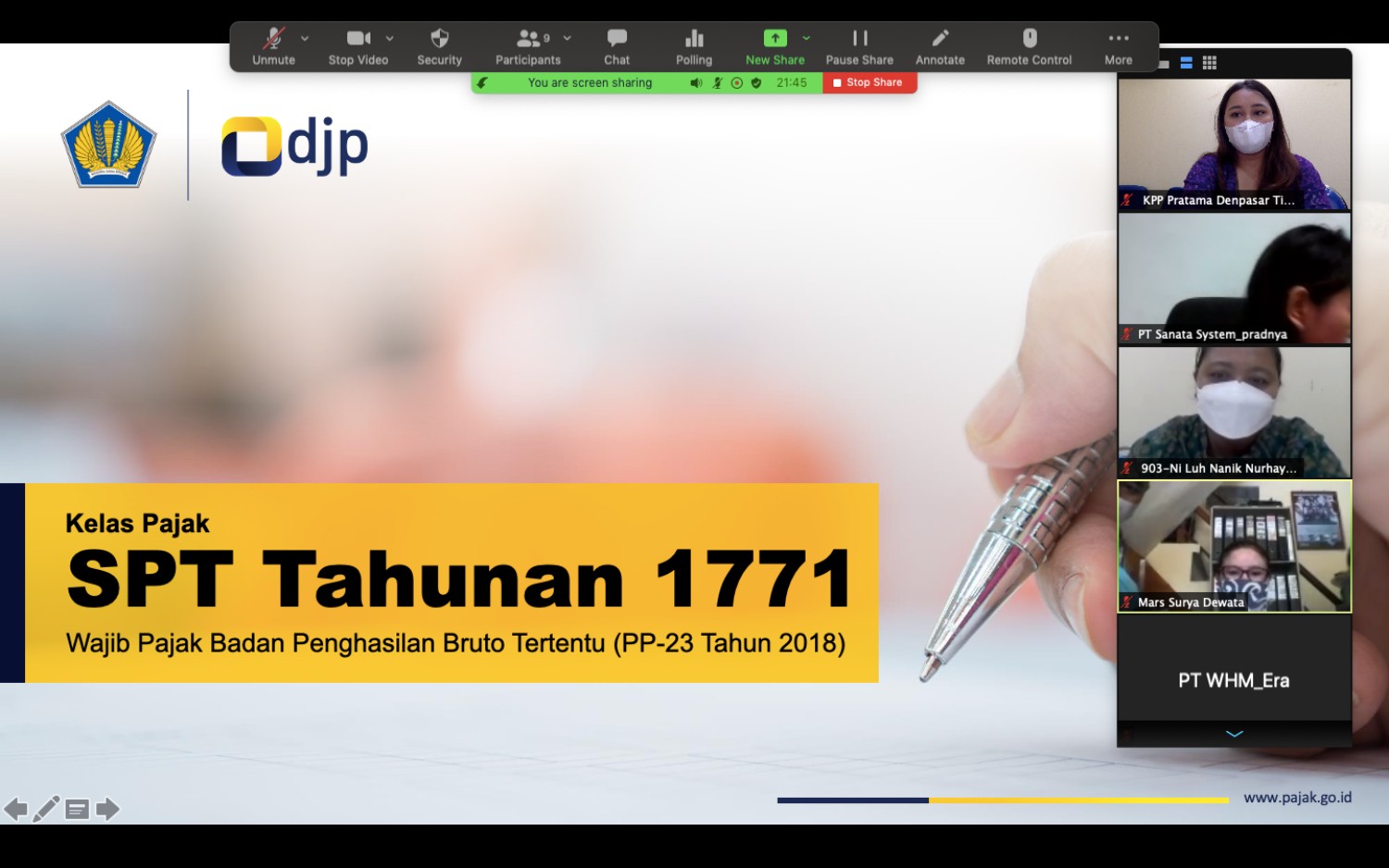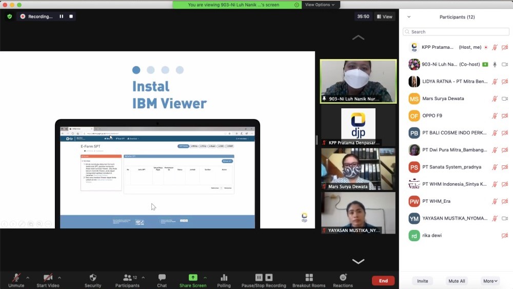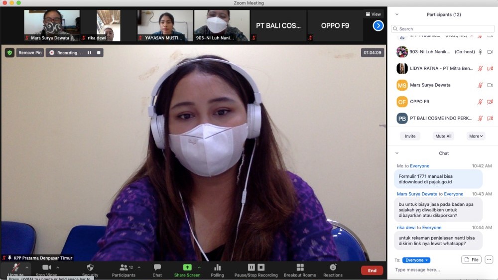 Kantor Pelayanan Pajak (KPP) Pratama Denpasar Timur mengadakan kelas pajak secara daring tentang pengisian SPT Tahunan 1771 bagi Wajib Pajak Badan UMKM melalui e-Form di Denpasar (Selasa, 27/4).