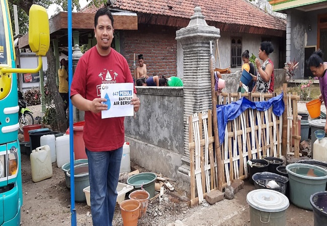 Krisis air bersih ini disebabkan oleh kemarau panjang yang menyebabkan kekeringan di daerah tersebut selama lebih dari tiga bulan. Bantuan air bersih ini diletakkan pada bak penampungan yang telah dibuat sendiri oleh warga sekitar dengan alas terpal. Setiap warga mengambil air dengan menggunakan berbagai alat seperti jirigen, galon, dan lain sebagainya.