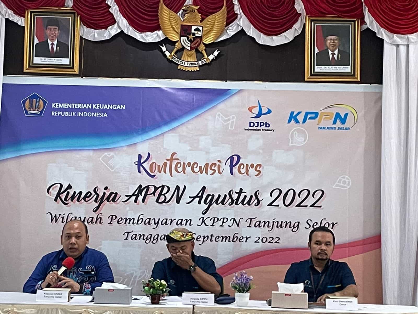Bertempat di aula KPPN Tanjung Selor, Bulungan (Kamis, 15/9), Kepala Kantor Pelayanan, Penyuluhan, dan Konsultasi Perpajakan (KP2KP) Tanjung Selor Agus Setiawan turut hadir dalam Konferensi Pers Kinerja Anggaran Pendapatan dan Belanja Negara (APBN) Agustus 2022.