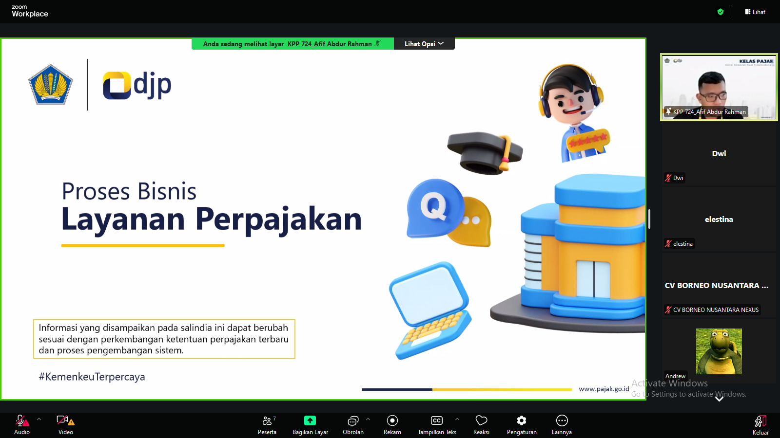 Kantor Pelayanan Pajak (KPP) Pratama Bontang kembali menyapa Wajib Pajak Kota Bontang dengan menyelenggarakan Kelas Pajak Online dengan topik Core Tax Administration System (CTAS): Layanan Perpajakan yang dilaksanakan melalui Zoom Cloud Meetings di Kota Bontang (Kamis, 16/5).
