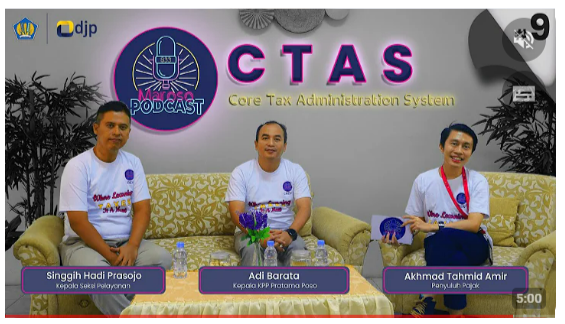 Akun resmi Youtube Kantor Pelayanan Pajak (KPP) Pratama Poso telah merilis siniar perdana di tahun 2024 dalam program “MARCAST (Maroso Podcast) Episode 9”. Siniar ini mengusung tema “Mengenal CTAS atau Core Tax Administration System” yang dipandu oleh Asisten Penyuluh Pajak Mahir, Akhmad Tahmid Amir atau biasa disapa Ata. Siniar ini mengudara di Ruang Pertemuan KPP Pratama Poso, Sulawesi Tengah (Rabu, 29/5). Siniar kali ini berlangsung selama kurang lebih satu jam dengan menghadirkan Kepala KPP Pratama Poso Adi Barata dan Kepala Seksi Pelayanan Singgih Hadi Prasojo sebagai narasumber.