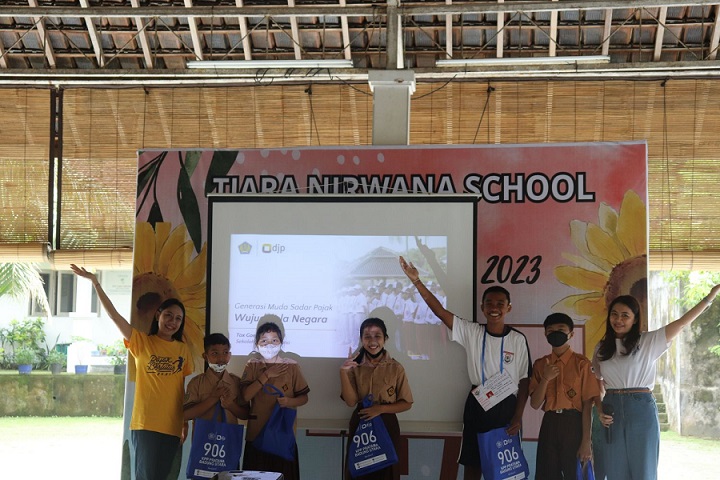 Kantor Pelayanan, Penyuluhan, dan Konsultasi Perpajakan (KP2KP) Kerobokan dan Kantor Pelayanan Pajak (KPP) Pratama Badung Utara mengenalkan pajak melalui kegiatan Tax Goes To School (TGTS) kepada siswa Sekolah Tiara Nirwana di Jl. Muding Batu Sangian IV No.7, Kerobokan Kaja, Kecamatan Kuta Utara, Kabupaten Badung, Bali (Jumat, 14/7).