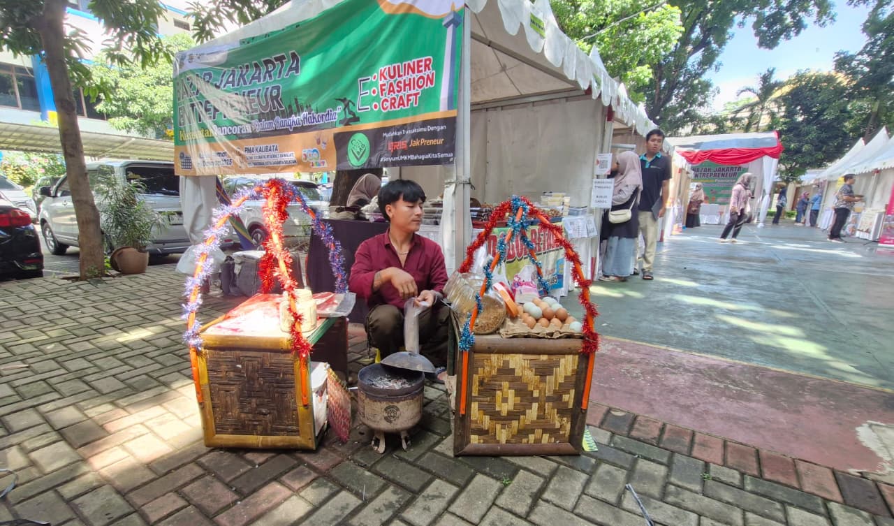 Sosok Arman Maulana, penjual kerak telur berusia 24 tahun, menjadi magnet yang menarik perhatian pengunjung dengan aroma dan cita rasa otentik Jakarta di Peringatan Hari Anti Korupsi Sedunia (Hakordia) 2025 yang berlangsung di Lapangan Komplek Pajak Kalibata, Jalan TMP Kalibata Nomor 19B, Jakarta Selatan (Jumat, 5/12).