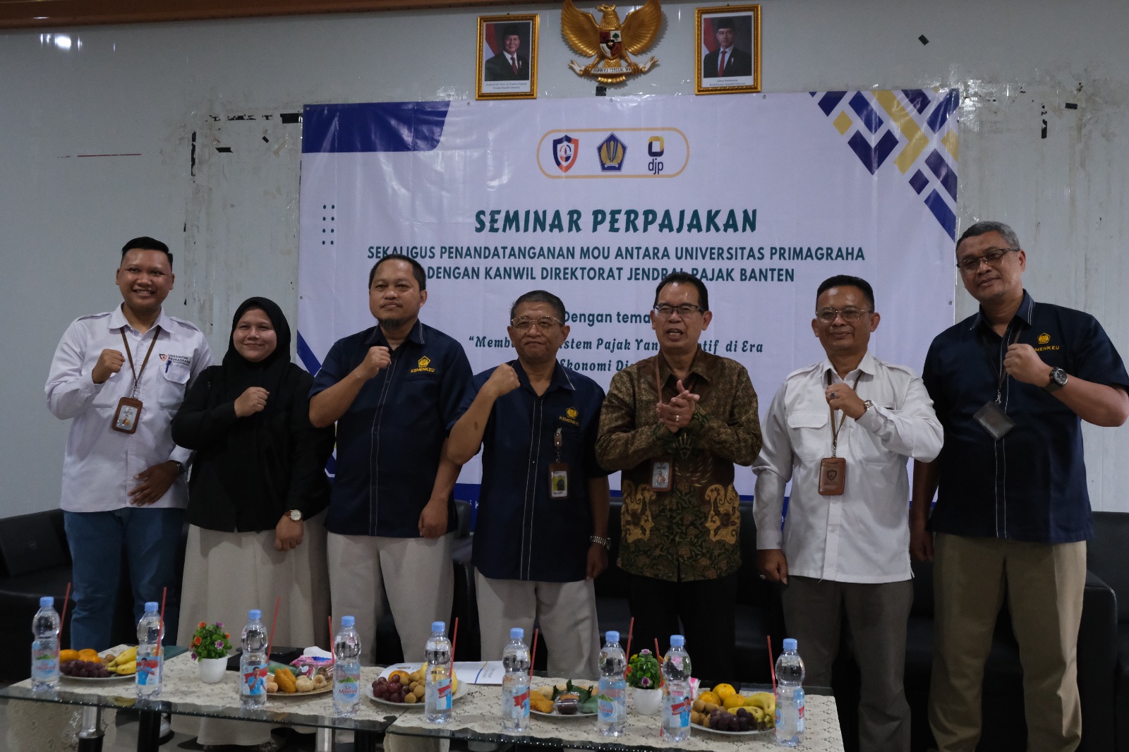 Kantor Wilayah (Kanwil) Direktorat Jenderal Pajak (DJP) Banten berkolaborasi dengan Universitas Primagraha untuk menyelenggarakan penandatanganan Perjanjian Kerja Sama (PKS) Tax Center dan Seminar Perpajakan bertemakan “Membangun Sistem Pajak Yang Adaptif di Era Ekonomi Digital”.