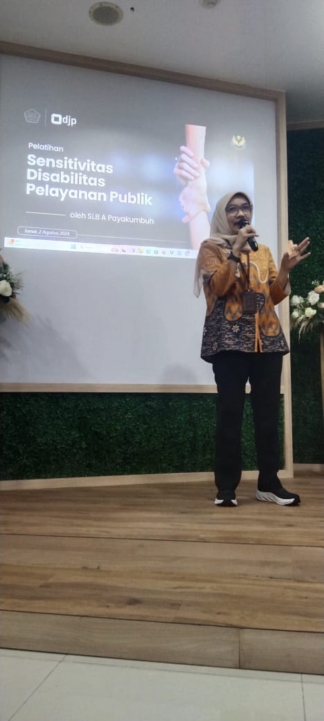 Dewi Marza, S.Pd yang merupakan Pengawas Sekolah Luar Biasa Cabang Dinas Pendidikan Wilayah IV Provinsi Sumatera Barat selaku narasumber menyampaikan apresiasi atas komitmen KPP Pratama Payakumbuh dalam memberikan layanan inklusif bagi kelompok rentan. Perlu diketahui bahwa sejak tahun 2012 Kota Payakumbuh telah mencanangkan sebagai kota pelayanan inklusif dan berharap sarana dan prasarana yang disediakan oleh KPP Pratama Payakumbuh dapat direplikasi oleh kantor pajak di seluruh Indonesia.