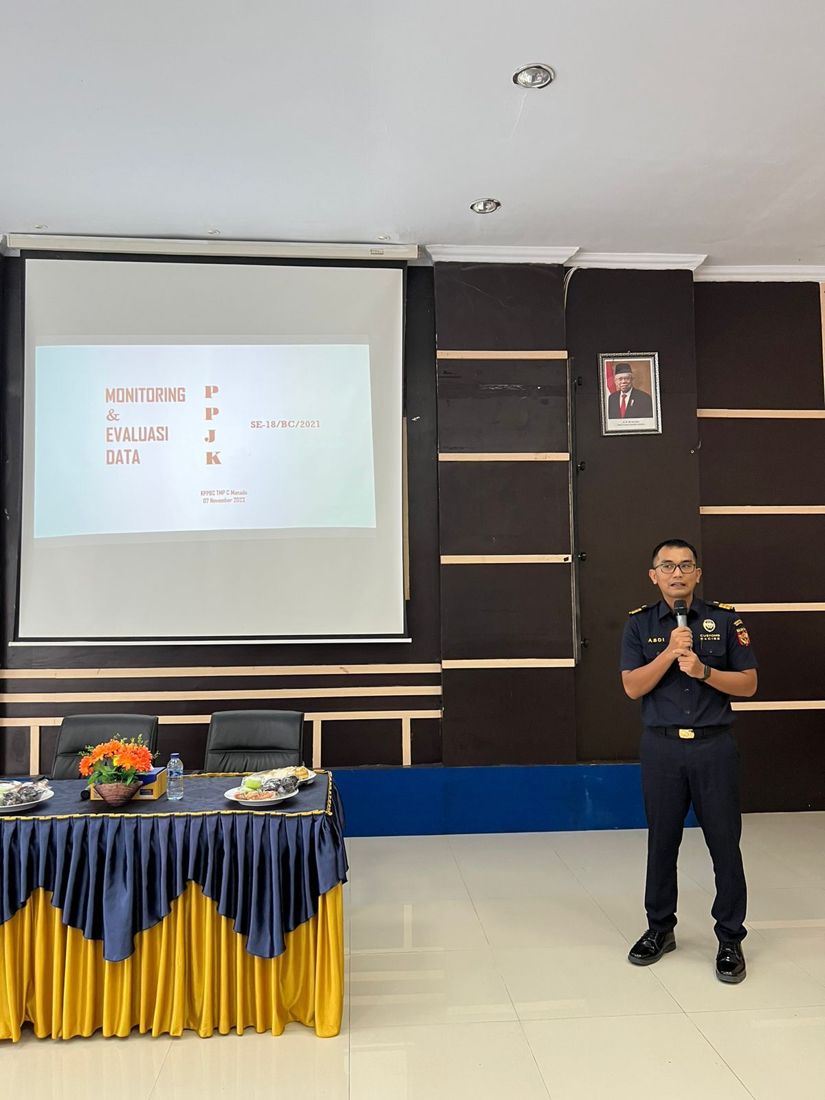 Fungsional Pajak Bakri Tangnga dan Ghondur Dzaky menyampaikan pentingnya melakukan pemadanan NIK-NPWP dan menjelaskan mengenai langkah-langkah pemadanan NIK-NPWP di situs www.pajak.go.id. Selain itu, pada kesempatan ini pun dilakukan penyampaian Monitoring dan Evaluasi Pengusaha Pengurus Jasa Kepabeanan (PPJK) oleh Kepala Seksi Pelayanan Kepabeanan dan Cukai Dukungan Teknis (PKCDT) KPPBC TMP C Manado Abdi.