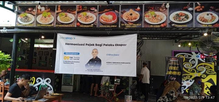 Komunitas Bisa Ekspor Yogyakarta bekerjasama dengan Kanwil DJP DIY mengadakan Sosialisasi Kewajiban Perpajakan bagi UMKM khusus eksportir komoditas di Burjo Borneo by Bolodewo (Kamis, 9/2).