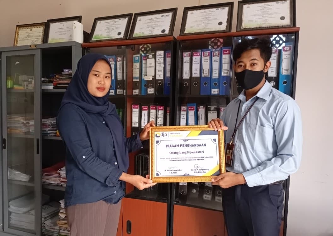 Kantor Pelayanan Penyuluhan dan Konsultasi Perpajakan (KP2KP) Nunukan memberikan apresiasi bagi wajib pajak yang telah berkontribusi besar dalam pembayaran Pajak Bumi dan Bangunan (PBB) tahun 2020 di Kabupaten Nunukan (Rabu, 16/6). Pemberian apresiasi ini berbentuk piagam penghargaan kepada wajib ajak tersebut karena telah melunasi PBB dengan baik dan tepat waktu.