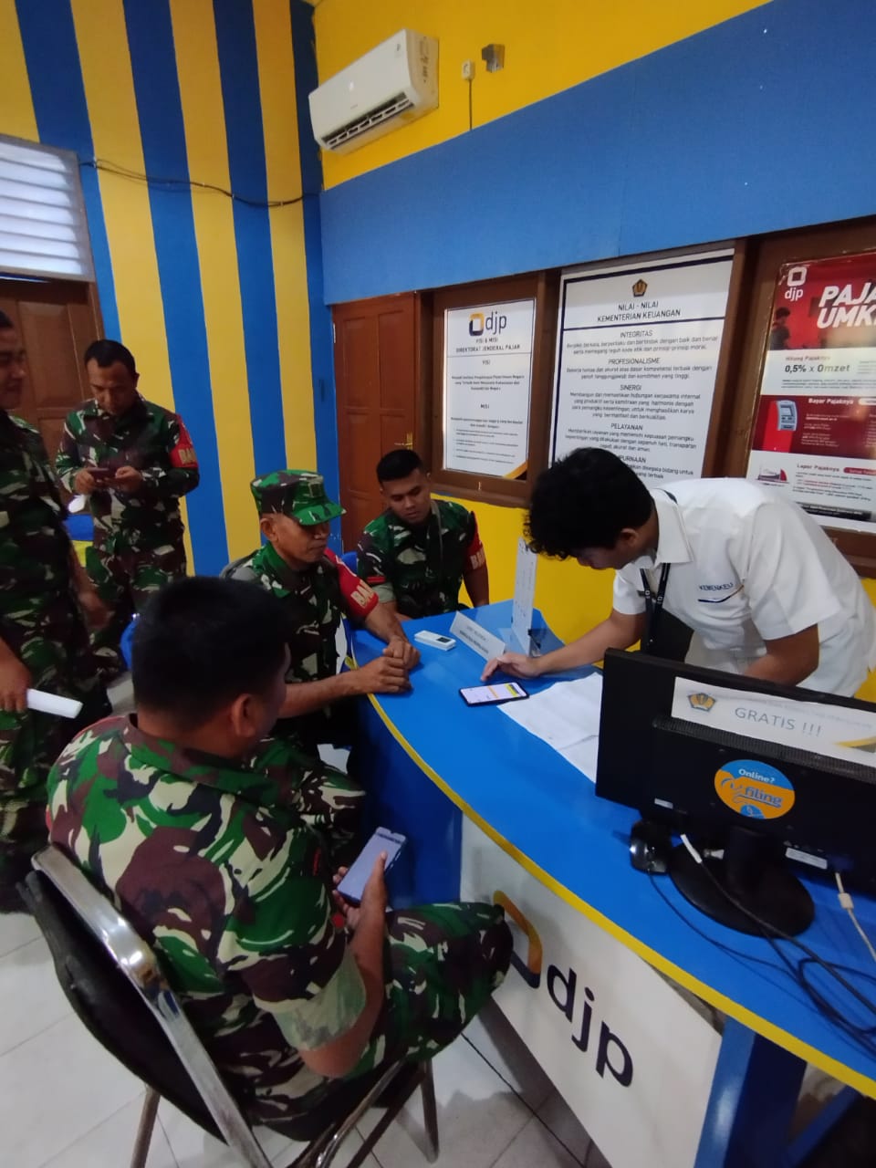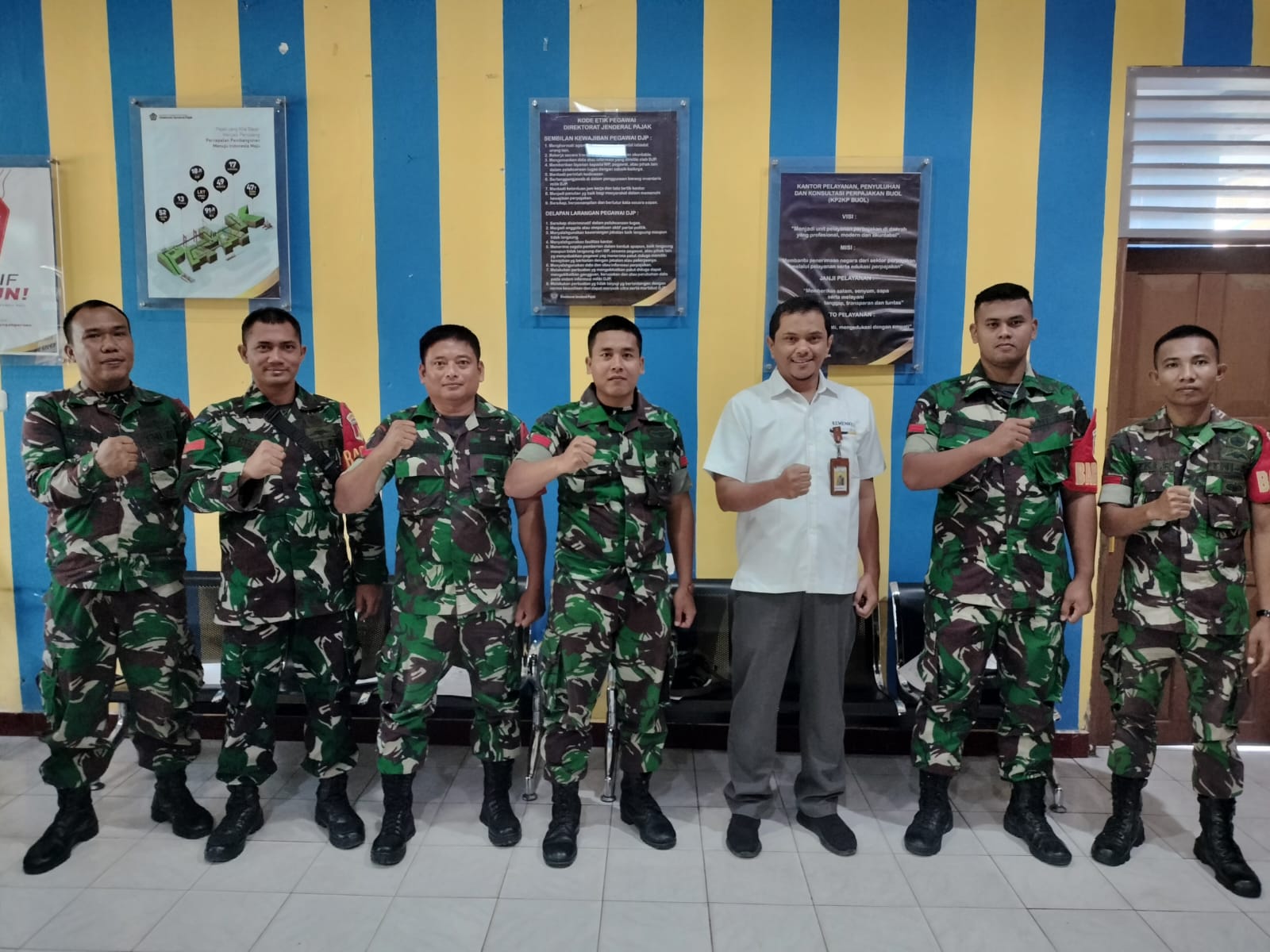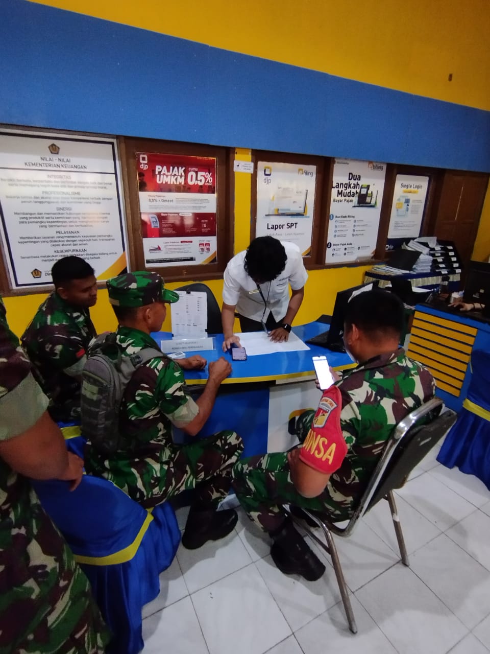 Prajurit TNI dari Koramil Biau terlihat berbondong-bondong mendatangi Kantor Pelayanan, Penyuluhan, dan Konsultasi Perpajakan (KP2KP) Buol, Sulawesi Tengah (Senin, 29/1). Kedatangan prajurit tersebut untuk menjalankan kewajiban pelaporan Surat Pemberitahuan (SPT) Tahunan 2023 Orang Pribadi. Para pegawai KP2KP Buol pun menyambut kedatangan prajurit TNI tersebut dengan hangat dan memberikan bimbingan pengisian SPT Tahunan Orang Pribadi dengan menggunakan e-Filing.