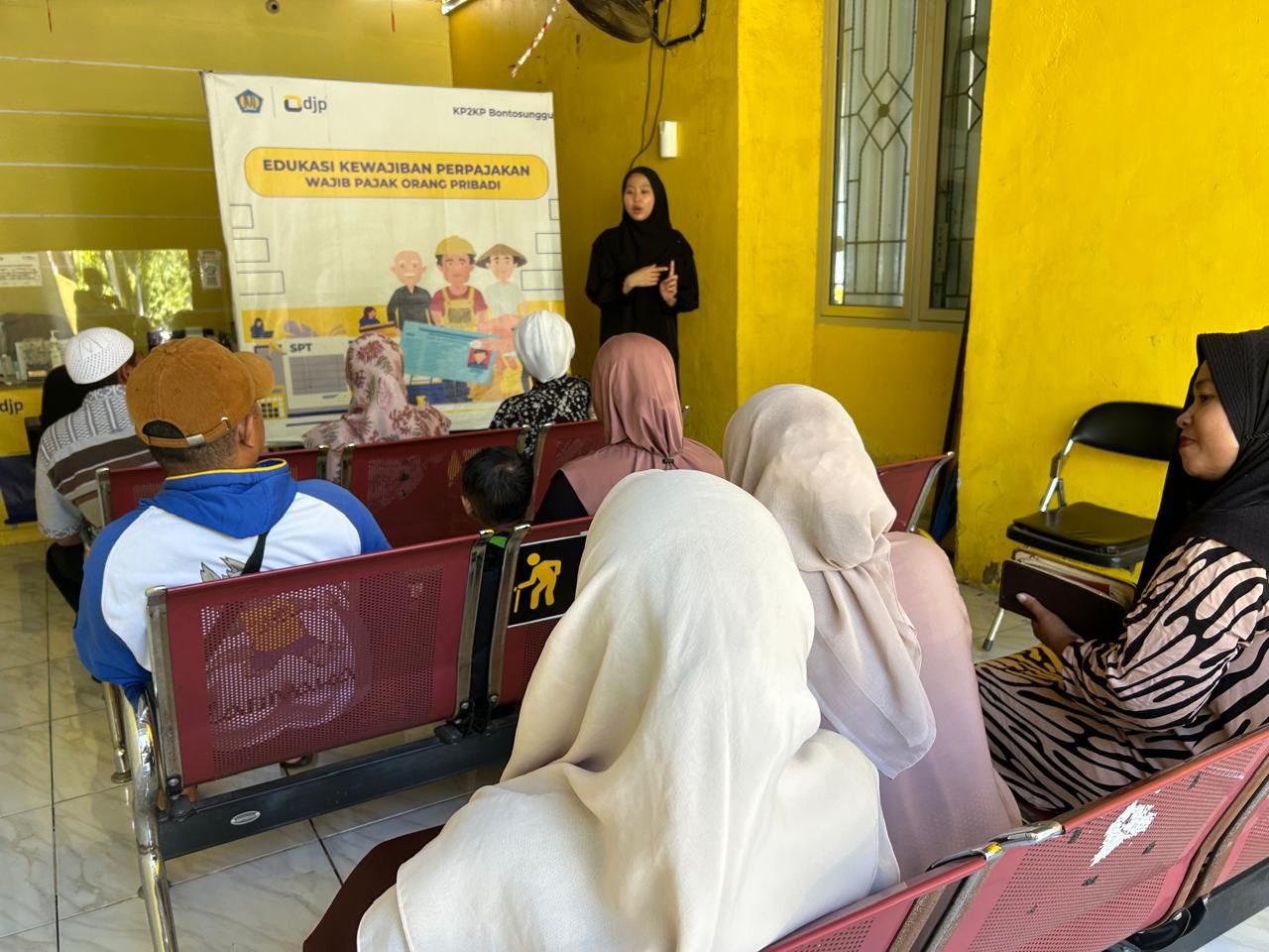 Kantor Pelayanan, Penyuluhan, dan Konsultasi Perpajakan (KP2KP) Bontosunggu, Jeneponto mengadakan program edukasi kewajiban perpajakan yang bertujuan untuk meningkatkan kesadaran dan pemahaman wajib pajak mengenai kewajiban mereka. Program ini dilaksanakan di Aula KP2KP Bontosunggu dan dihadiri oleh puluhan wajib pajak dari berbagai sektor (Kamis, 8/8).