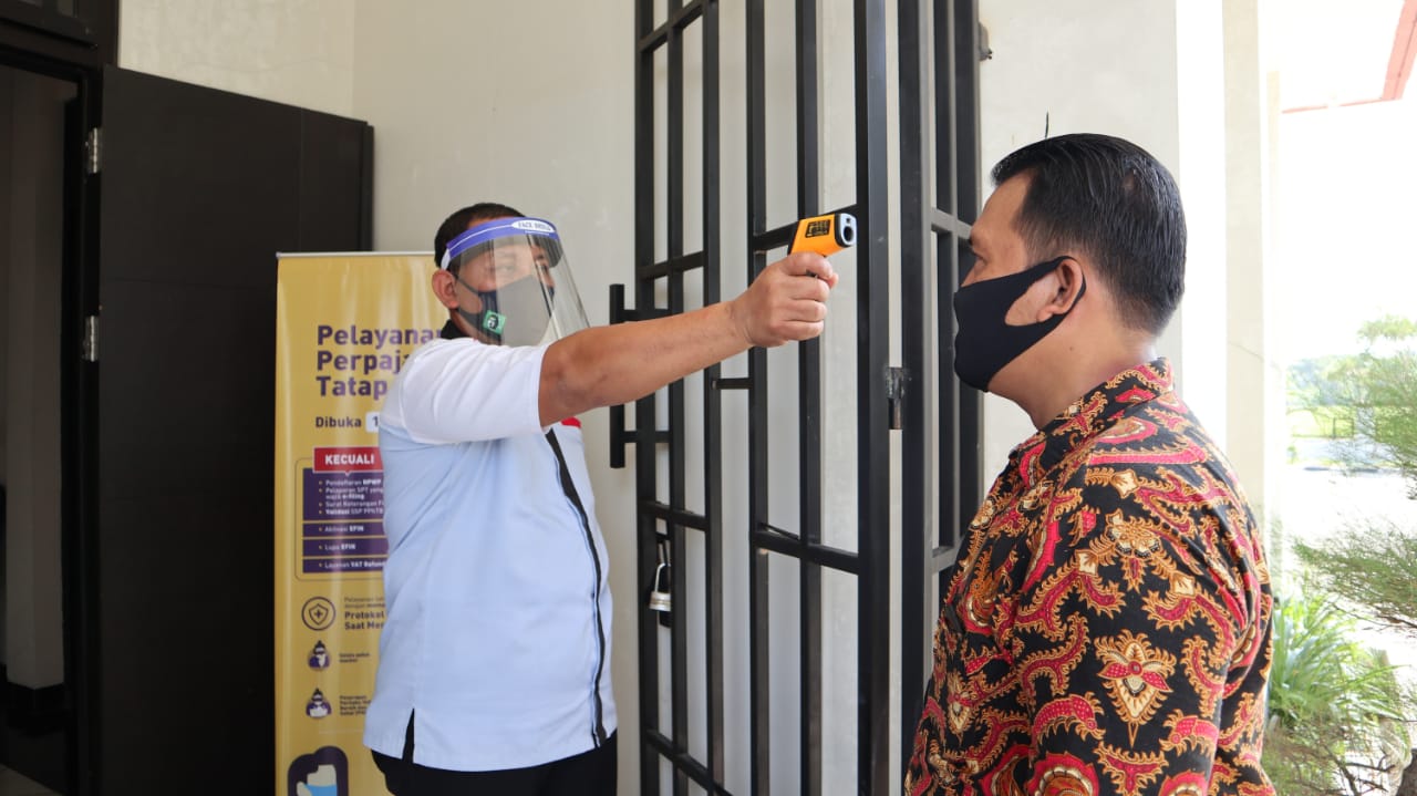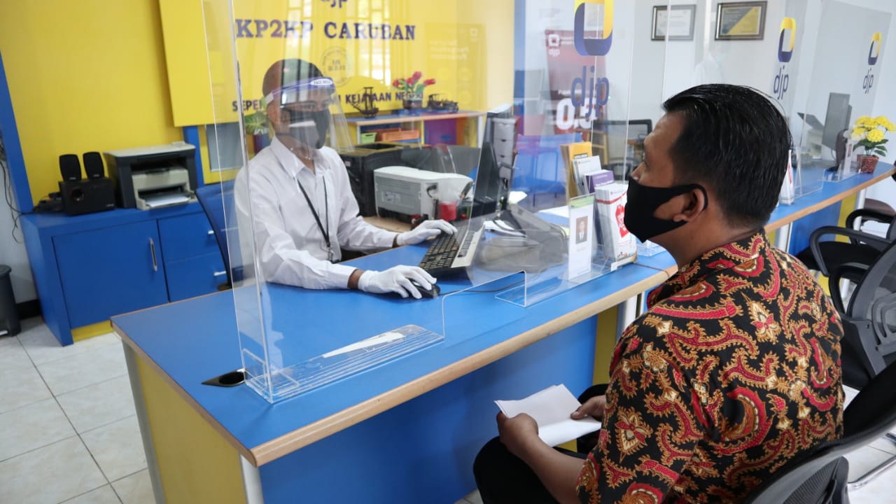 KP2KP Caruban membuka kembali layanan perpajakan secara tatap muka dengan menjalankan protokol kesehatan saat melayani wajib pajak selama era normal baru di TPT (Tempat Pelayanan Terpadu) KP2KP Caruban, di Madiun (Senin, 15/06).