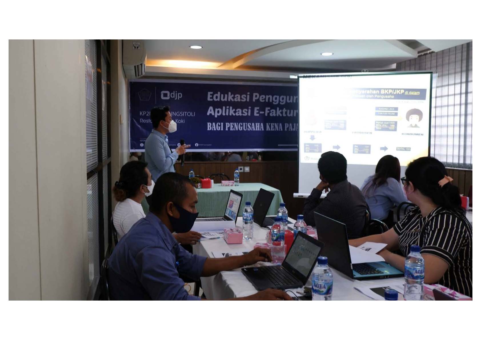 Kantor Pelayanan, Penyuluhan, dan Konsultasi Perpajakan (KP2KP) Gunungsitoli bersama Fungsional Penyuluh Kantor Pelayanan Pajak (KPP) Pratama Sibolga mengadakan edukasi Kewajiban Perpajakan dan Penggunaan Aplikasi e-Faktur bagi Pengusaha Kena Pajak (PKP) di Resto Rajanya Koki, Kota Gunungsitoli, Sumatera Utara (Rabu, 6/10).