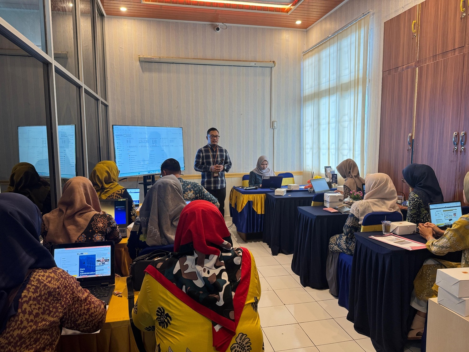 Setelah menyampaikan materi, Senni juga membuka sesi tanya jawab kepada bendahara yang hadir terkait kendala yang dihadapi baik saat menggunakan aplikasi Coretax DJP atau terkait kewajiban yang perlu dipenuhi oleh bendahara. Untuk menambah pemahaman bendahara, Senni juga mengajak bendahara untuk melakukan praktik langsung cara pembutan bupot dan pelaporan SPT Masa melalui Coretax DJP.