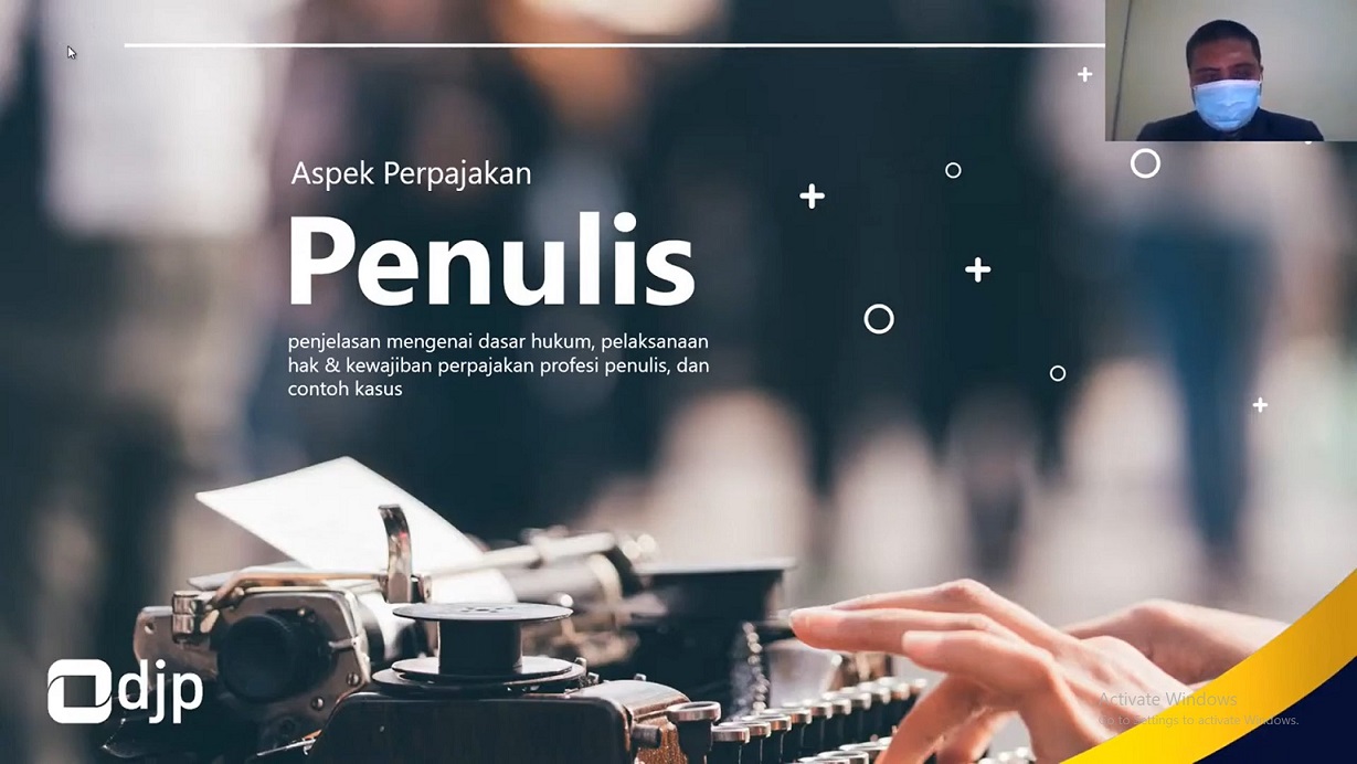 Narasumber menyampaikan materi terkait siapa saja yang dapat di kategorikan sebagai penulis , dasar hukum yang berlaku, objek pajak yang dapat digunakan sebagai perhitungan pajak terutang, pelaksanaan hak dan kewajiban profesi penulis dan beberapa contoh kasus perhitungan perpajakan.