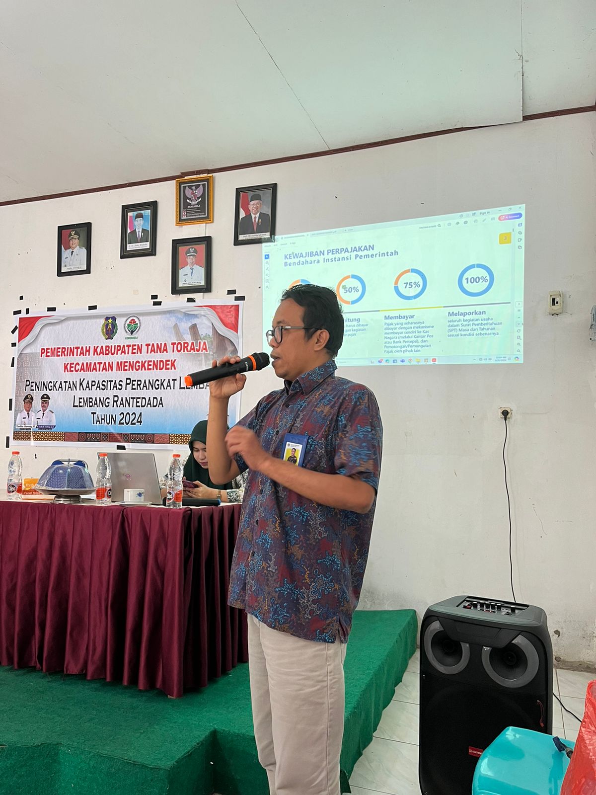 Kegiatan lalu dilanjutkan dengan pemaparan materi kewajiban bendahara desa oleh Kepala KP2KP Makale Sodikin, sesuai dengan Peraturan Menteri Keuangan (PMK) Nomor 59/PMK.03/2022 Perubahan atas PMK Nomor 231/PMK.03/2019 tentang Tata Cara Pendaftaran dan Penghapusan Nomor Pokok Wajib Pajak, Pengukuhan dan Pencabutan Pengukuhan Pengusaha Kena Pajak, serta Pemotongan dan/atau Pemungutan, Penyetoran, dan Pelaporan Pajak bagi Instansi Pemerintah. Materi yang diberikan meliputi Pajak Penghasilan (PPh) Pasal 21, PPh Pasal 22, PPh Pasal 23, PPh Pasal 4 ayat 2, dan Pajak Pertambahan Nilai (PPN).
