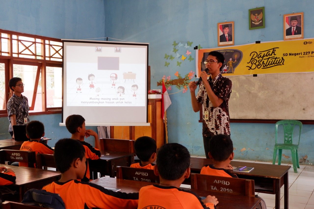 Pajak Bertutur yang diselenggarakan oleh KP2KP Malili kali ini dibagi menjadi dua sesi. Setelah sebelumnya serangkaian acara dilaksanakan di halaman sekolah, para peserta yang terdiri dari siswa-siswi kelas 5 dan 6 ini kemudian diarahkan untuk menerima materi di dalam ruang kelas. Pada kesempatan ini, para peserta mendapatkan materi mengenai peranan setiap warga negara dalam kehidupan berbangsa dan bernegara. Materi dikemas dan disampaikan dengan cerita dan ilustrasi yang menarik sehingga mudah untuk dipahami.