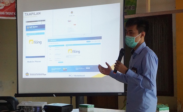Kantor Pelayanan, Penyuluhan, dan Konsultasi Perpajakan Marisa menyelenggarakan kegiatan Sosialisasi e-Filing kepada pegawai Dinas Pertanian Kabupaten Pohuwato yang belum melaksanakan pelaporan SPT Tahunannya di Aula Dinas Pertanian (Rabu, 24/2).